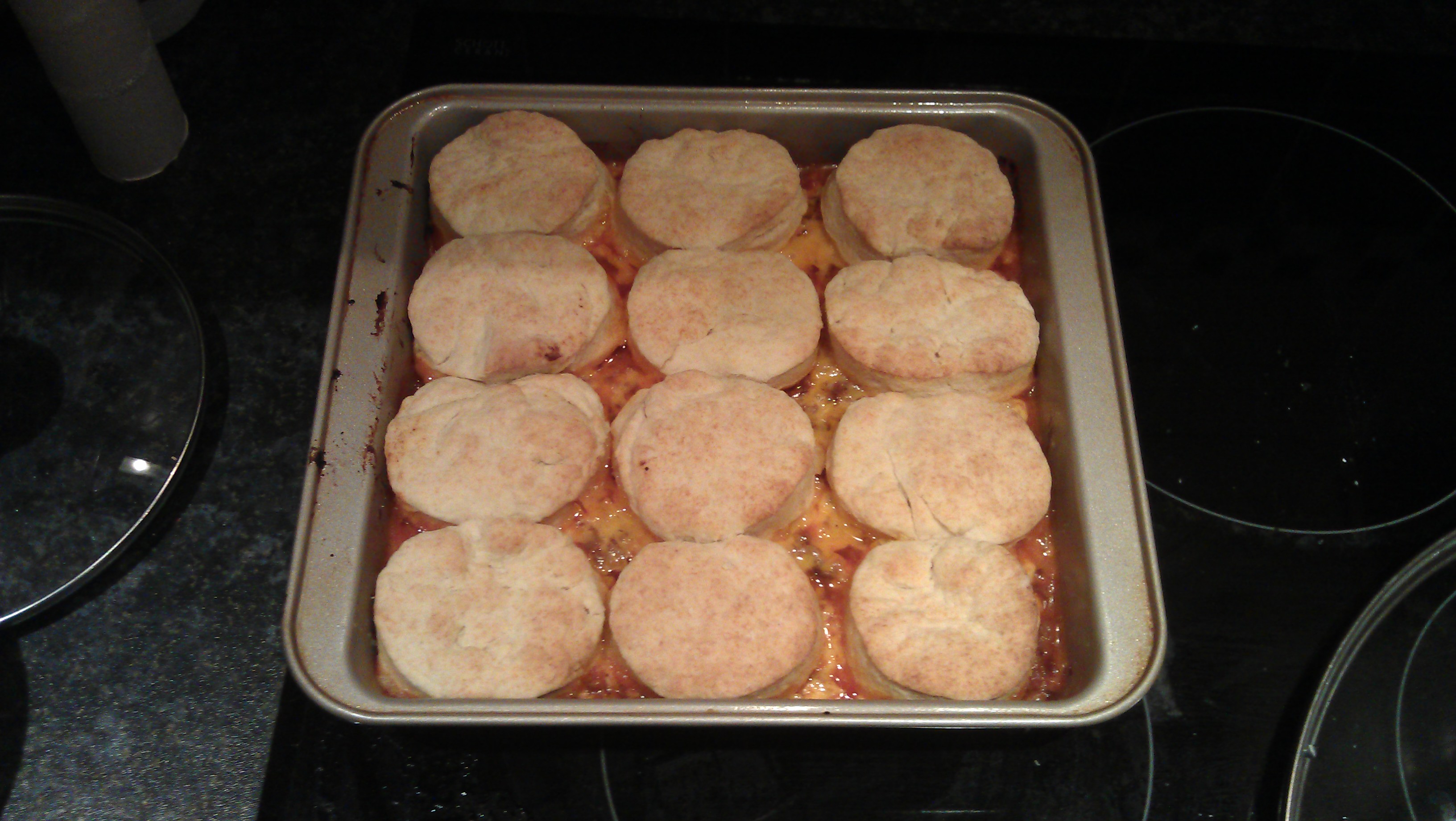 *I prefer to make my own biscuits using a pre-made mix. Simply follow the recipe up to the part where you put them on a baking sheet (since we need them to still be in dough form for this recipe!). And I like to cover the whole dish in biscuits, not just the edges!