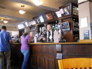 First thing we learned about ordering in a pub: you order & pay right away at the bar. So we got our beers right away (before noon, yikes!).
