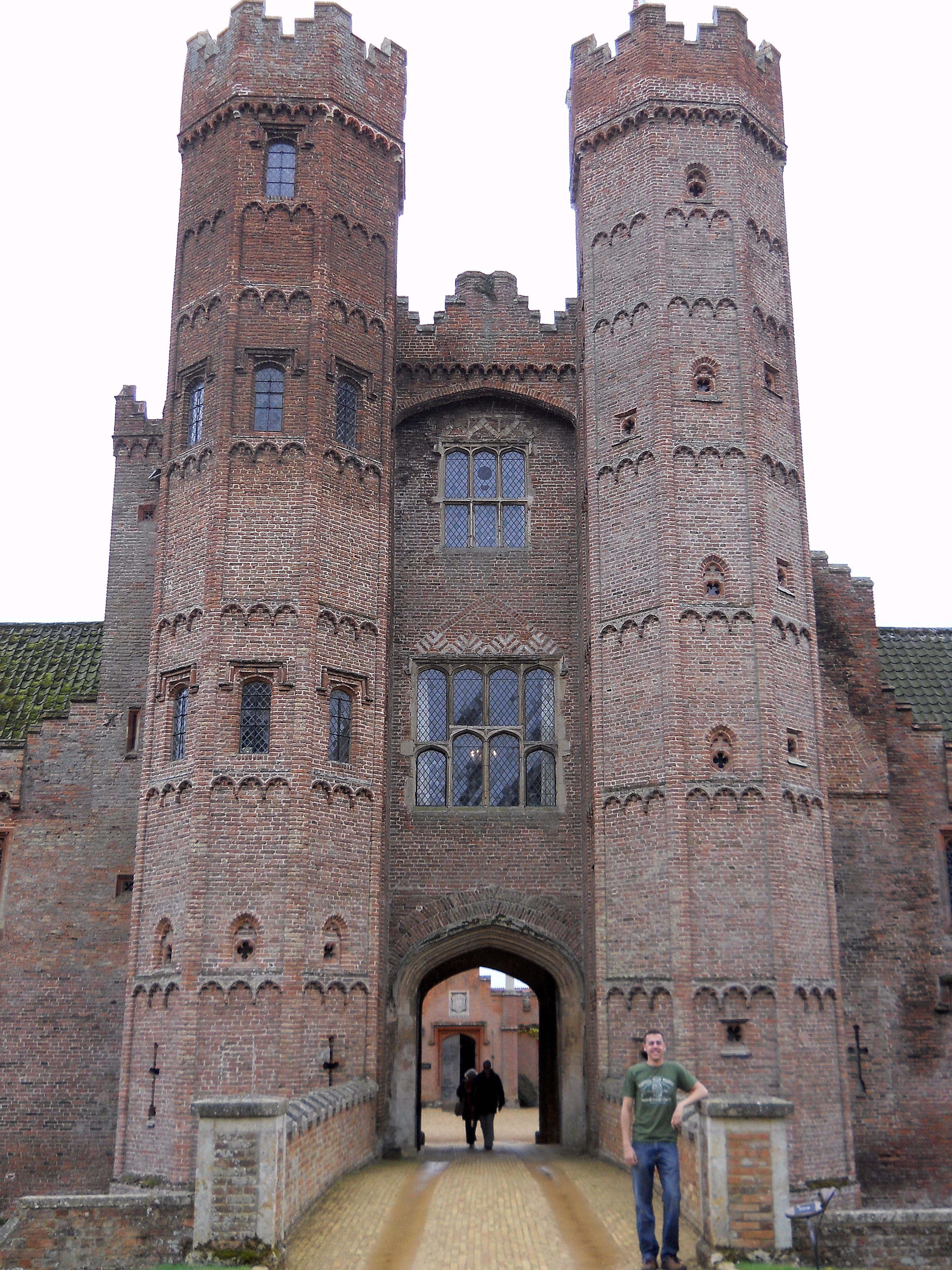 Next we headed up to the house. Despite the fact that it does have a moat, this was never a fortress; it was always a family home. Oxburgh is a great example of a late medieval, inward-facing great house. It also has an imposing fortified gatehouse that one must cross a bridge to enter. And all just for show. 🙂