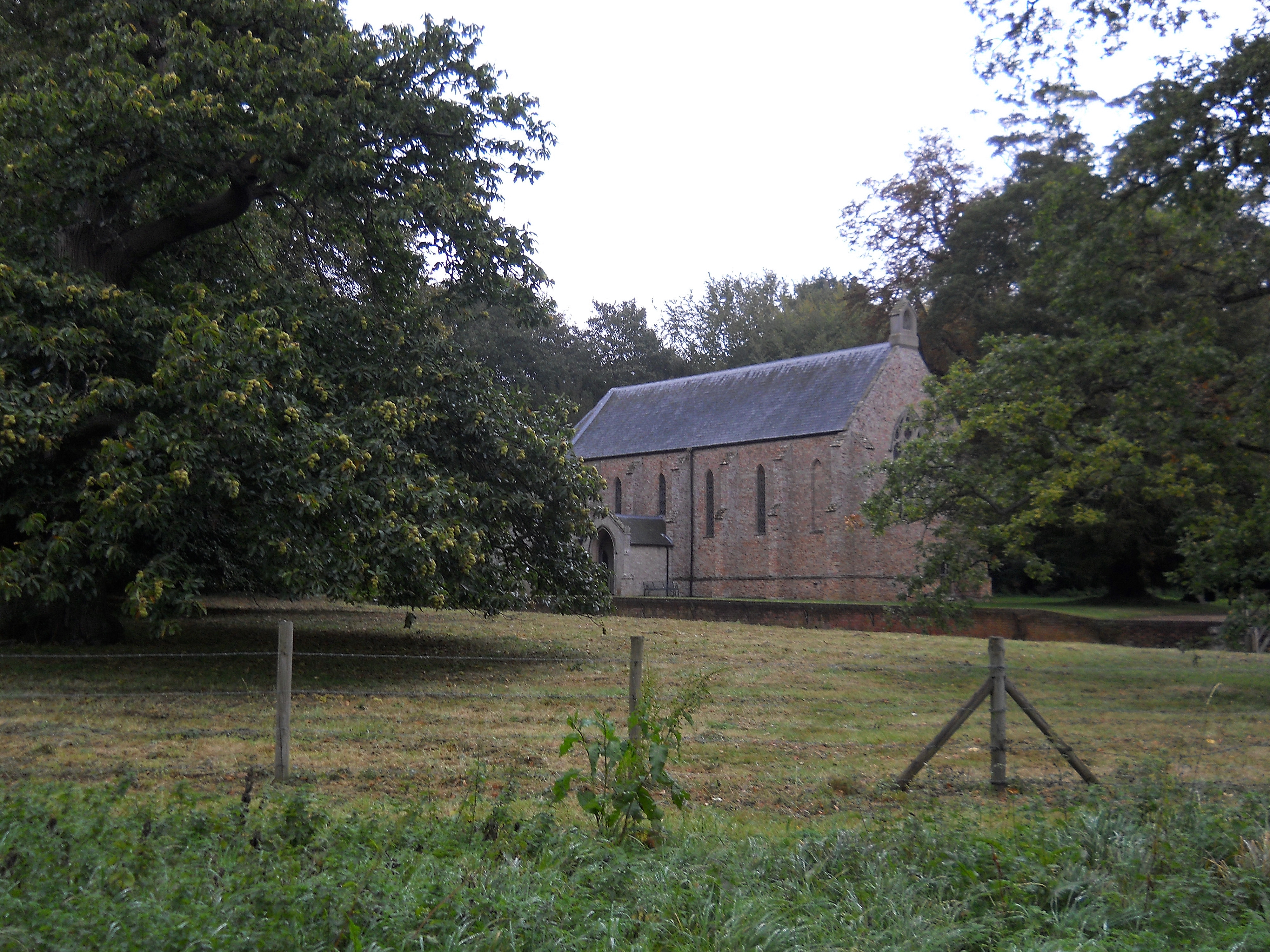 I didn’t get any pictures inside, because photography was not allowed. Darn it. 😦 But that just means that if you come to visit, we can bring you here so you can see the inside for yourself! 🙂 Besides being a really beautiful home, one of the things Oxburgh Hall is known for is its priest’s hole. Due to the Bedingfelds being Catholic, even when Catholics were persecuted in England, a Catholic priest may have had to hide within the small disguised room in the event of a raid. The room is reached via a trapdoor, which when closed blends in with the tiled floor. Unlike many similar priest holes, the one at Oxburgh is open to visitors.