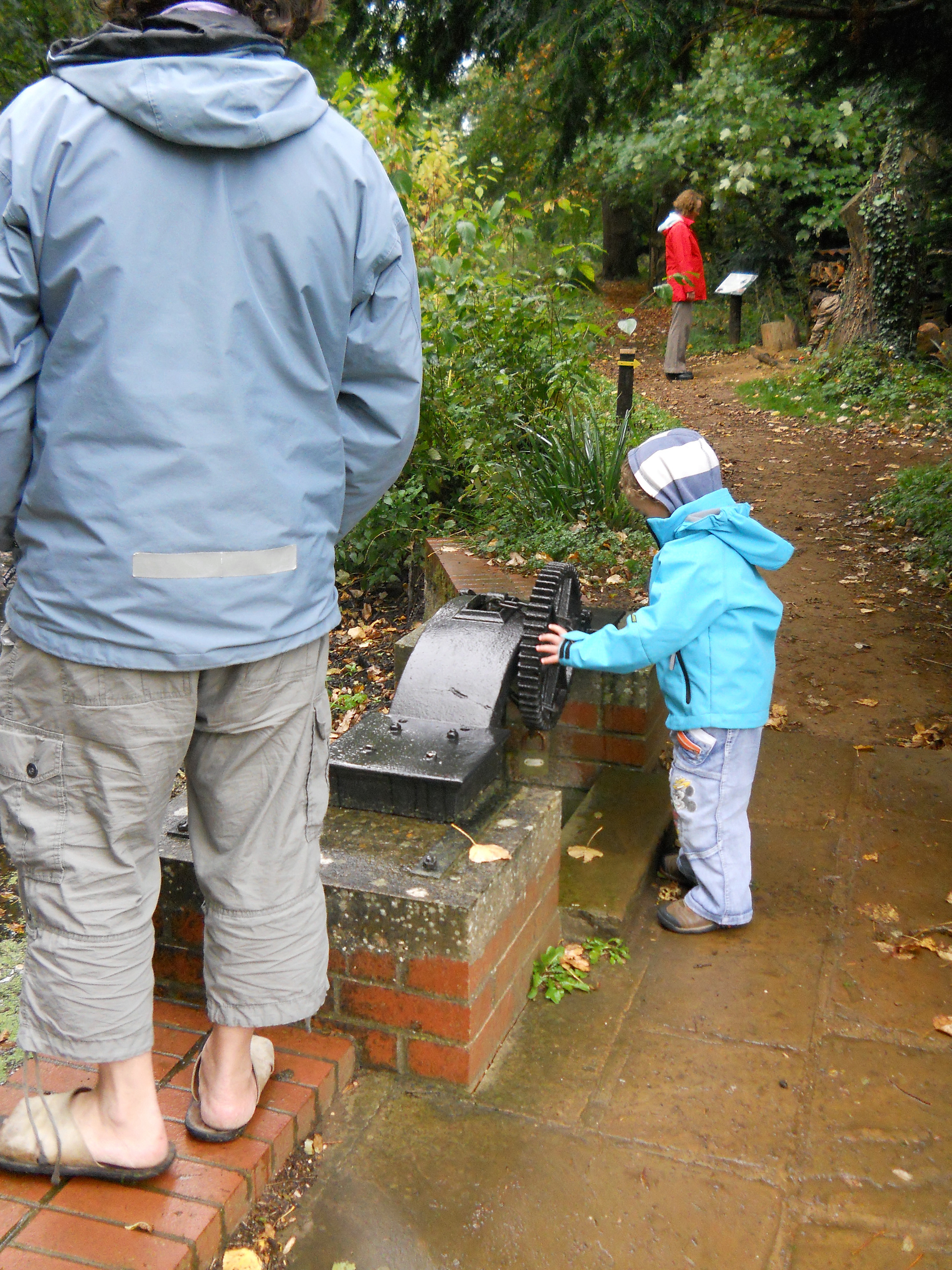 We walked part of the trails, but I was only wearing flats, and with the drizzle, it was a little too wet to be walking around. By the time we got to the car, the bottom 2 inches of my jeans were soaked. But we really want to go back and do some more walking around there. I was also impressed with the “kid-friendly” things on the trails. We saw a couple out with their two little boys, and they were having a great time!