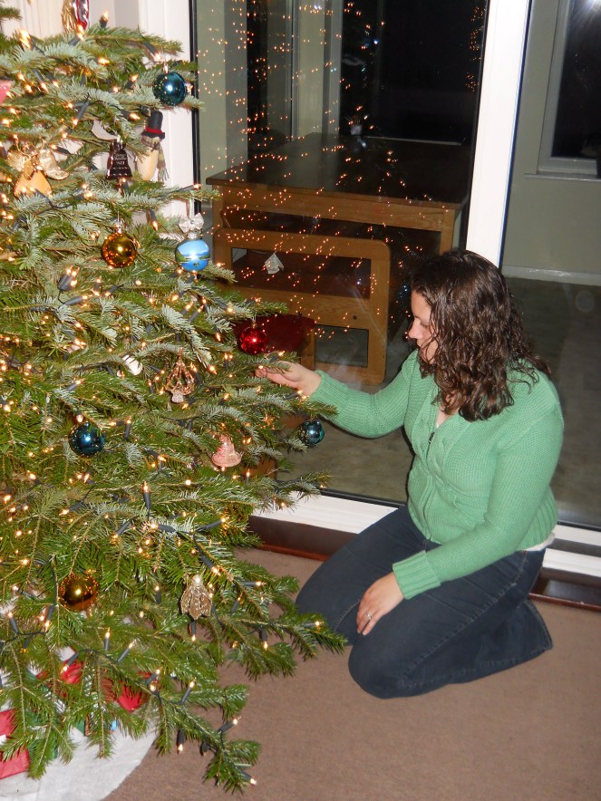 Did I mention that I’m a perfectionist? Well, so is Andrew. I fear for our future children… Anyway, he was very picky about the tree we got. I was a lot more easygoing about the whole thing, so I eventually just left the decision up to him. I knew I would never hear the end of it if I picked out an asymmetrical tree! And it had to have “soft” branches. Andrew knew he was in charge of putting on the lights, and he didn’t want battle wounds from poky tree branches. We really were happy with this tree — no complaints!