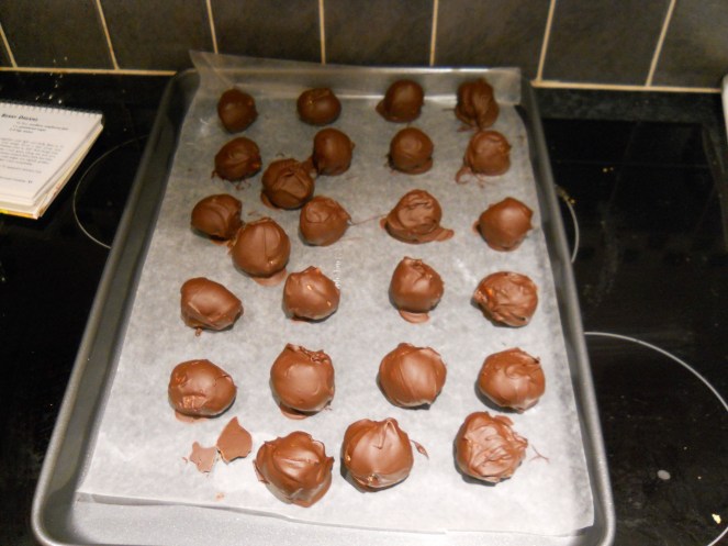 As for the cookies & candies I made, I made the Raspberry Dreams as well as chocolate-covered peanut butter balls and cream cheese mints. Both were pretty easy and fairly quick, although you should make sure you have enough room in your refrigerator beforehand if you’re making both at the same time!