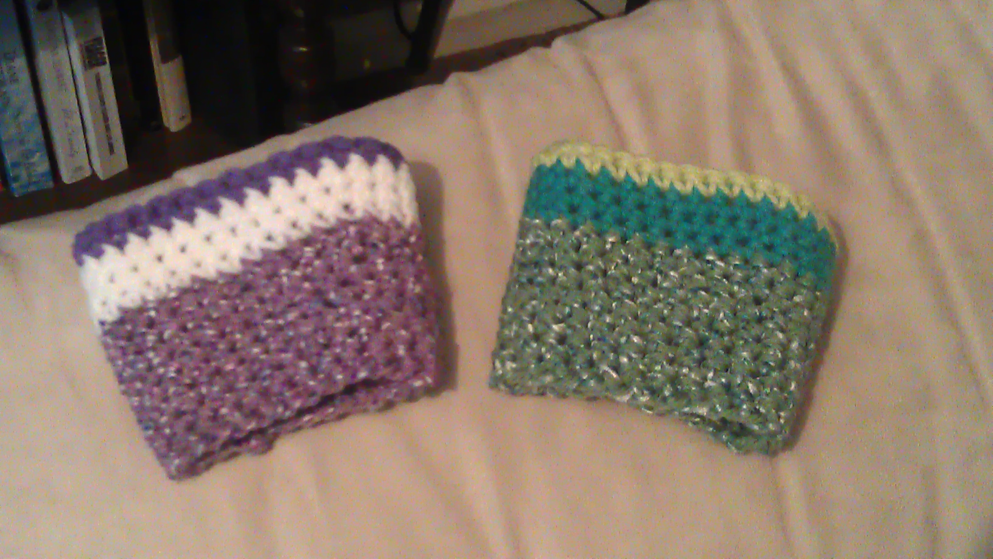 These were incredibly quick and easy. I used some of my scrap yarn that was worsted weight. Here is the pattern at Bernat’s website. These are cute, they fit in your purse, and it’s one less thing going into the landfills, right? If you would like one, just leave a comment with the color(s) you want. 🙂