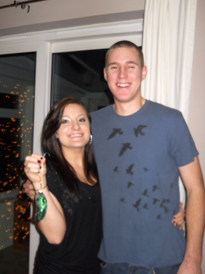 After dinner, I almost forgot about my most anticipated tradition: the pickle ornament! I don’t remember when I heard about the custom of finding the pickle ornament on the tree, but I wanted a pickle ornament since then! Andrew’s mom sent us one this year, and I was thrilled to be able to start the tradition! Since we don’t have kids yet, I made our unsuspecting dinner guests play the game.