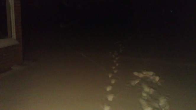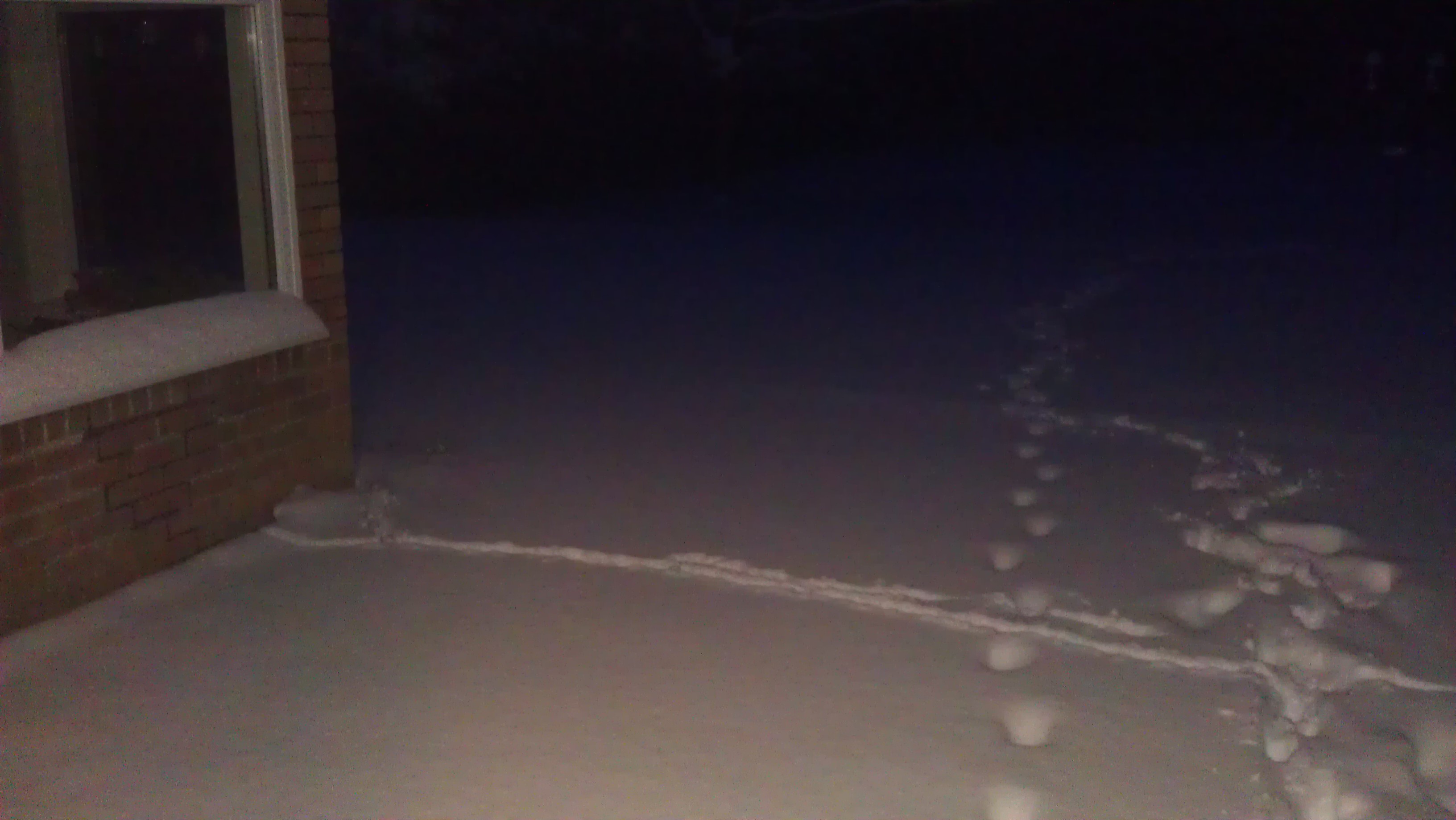 We were dog-sitting for friends of ours that weekend, so I actually did have a reason to look outside every few hours. We were getting very light flurries by 7pm, and then when I took the dog out again around 10pm we had this: