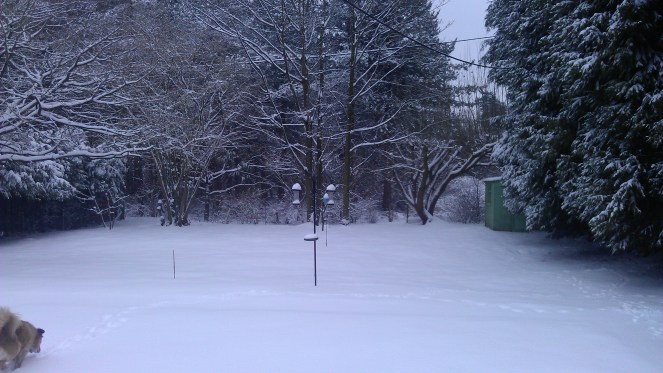 Well, it finally happened. After a snow-less January, we got a prediction for snow again this past weekend (first weekend in February). I was skeptical. Then I looked at a more extensive weather forecast for our area, and saw that 13 cm was predicted. I looked it up…that’s about 5 inches. I was practically jumping for joy!