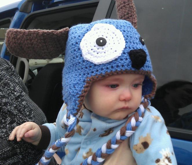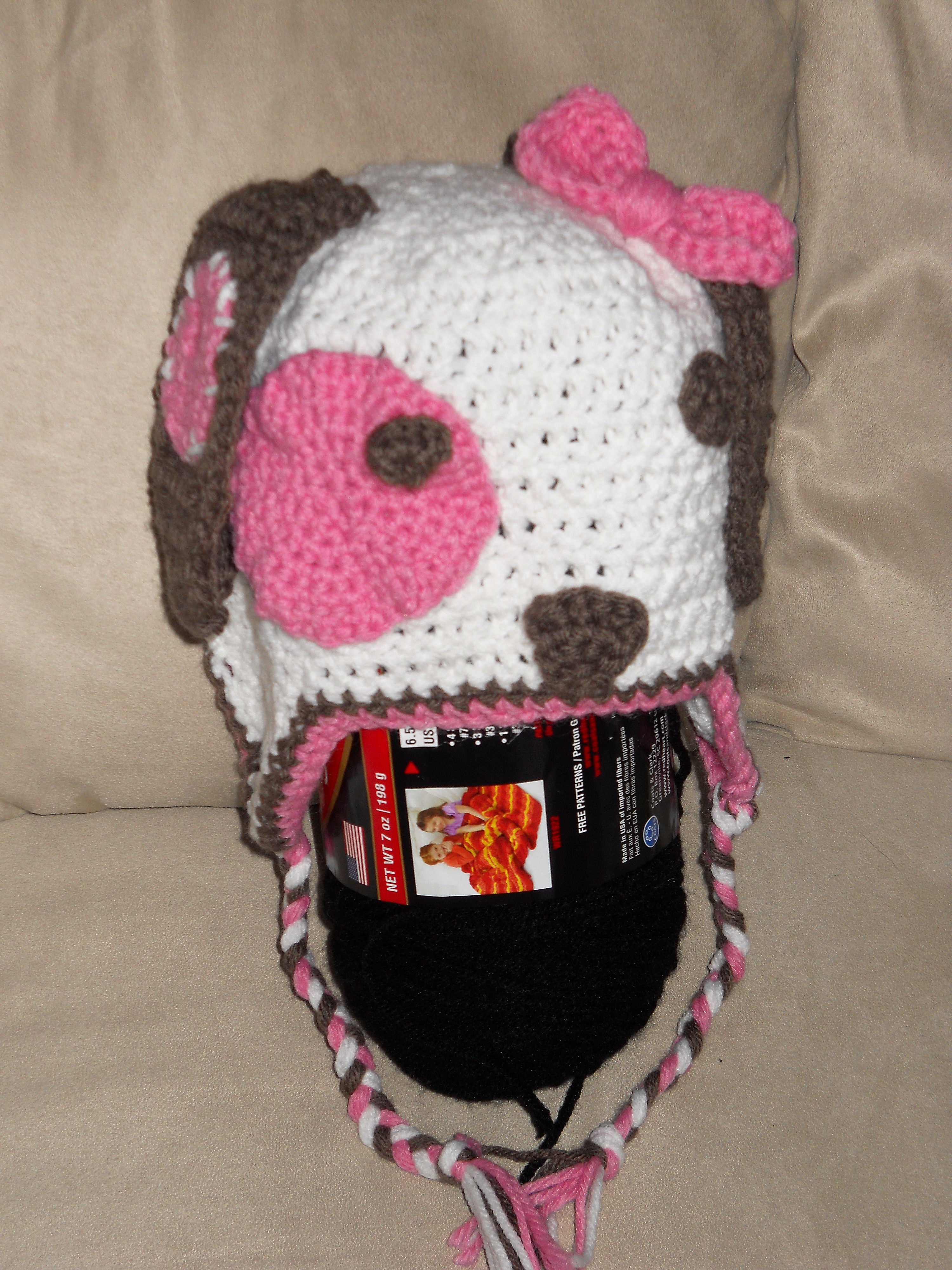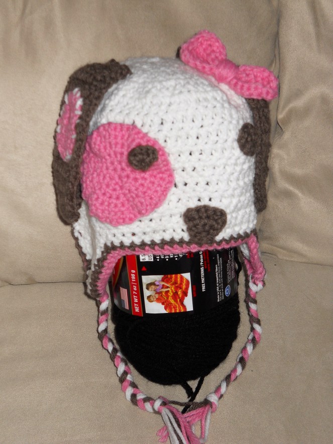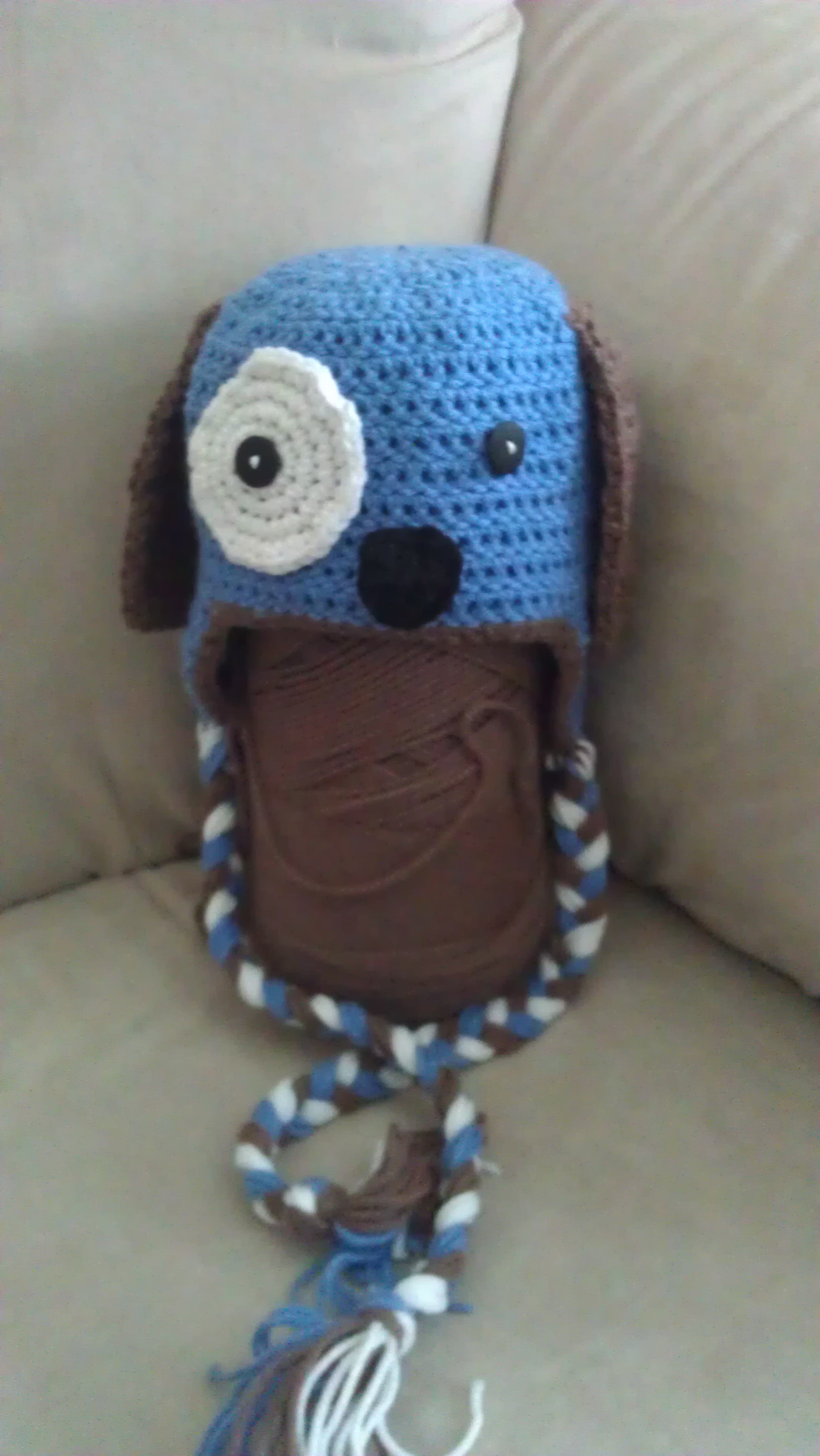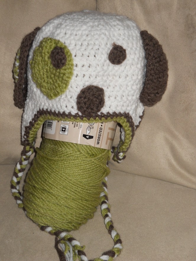 The Little Puppy hat can really be made in a variety of ways. I can put a patch pretty much anywhere you want (ears, on the face, etc). This can also be done in any color combinations. The eyes can either be done with buttons or with crochet pieces. Although this is shone with earflaps and braids, it could also be done as a beanie instead.