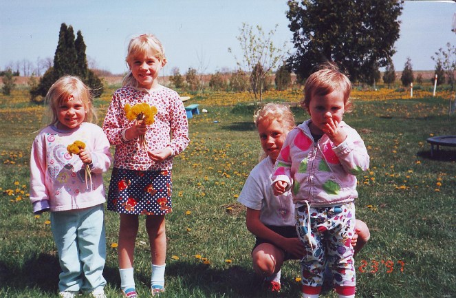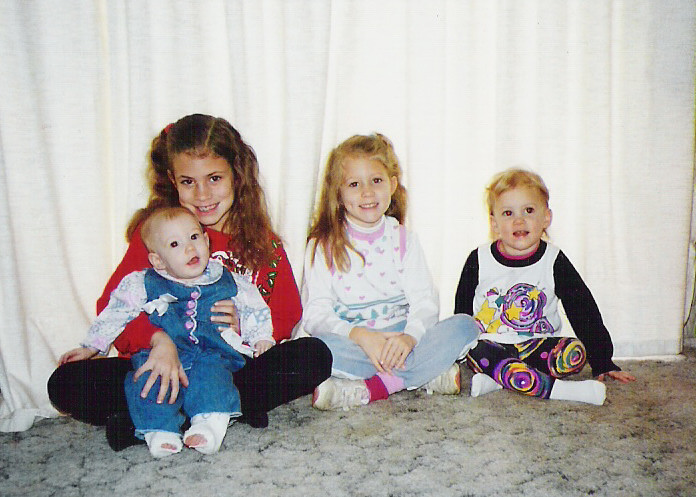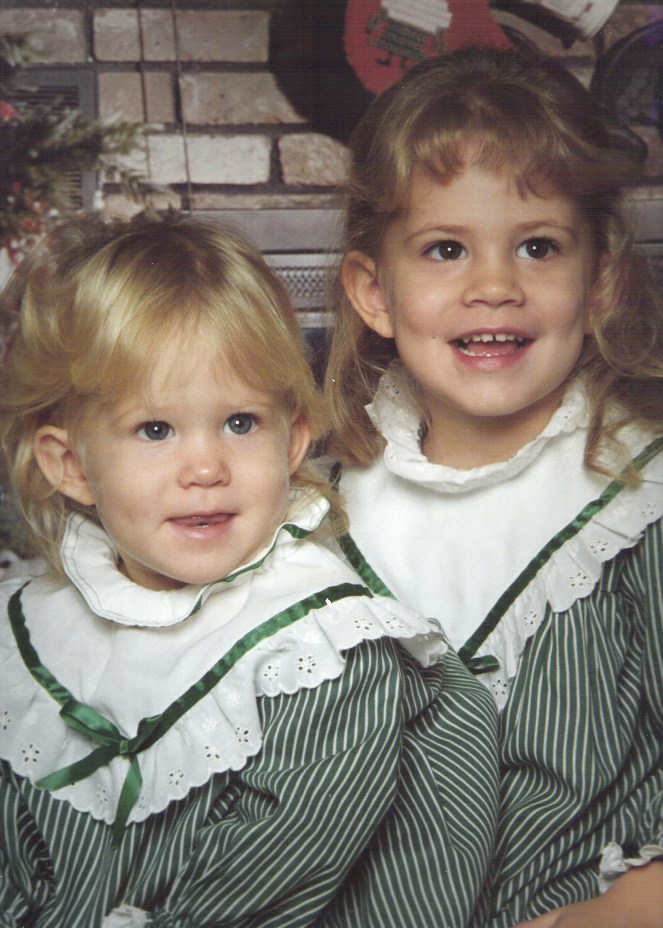 Oh, we fought like cats and dogs once in awhile, but I think we got along pretty well for the most part. We were pretty much opposites growing up, and our grandma always said Manda wasn’t naughty, she was “spirited.” π And a story I heard a lot growing up was how I was a very particular kid. I liked things just so, and I would spend a lot of time organizing the play kitchen I had. And then Amanda would crawl over to it, pull herself up, and shake that little kitchen! All my little teacups I had lined up just right… ahh, it was awful, haha.