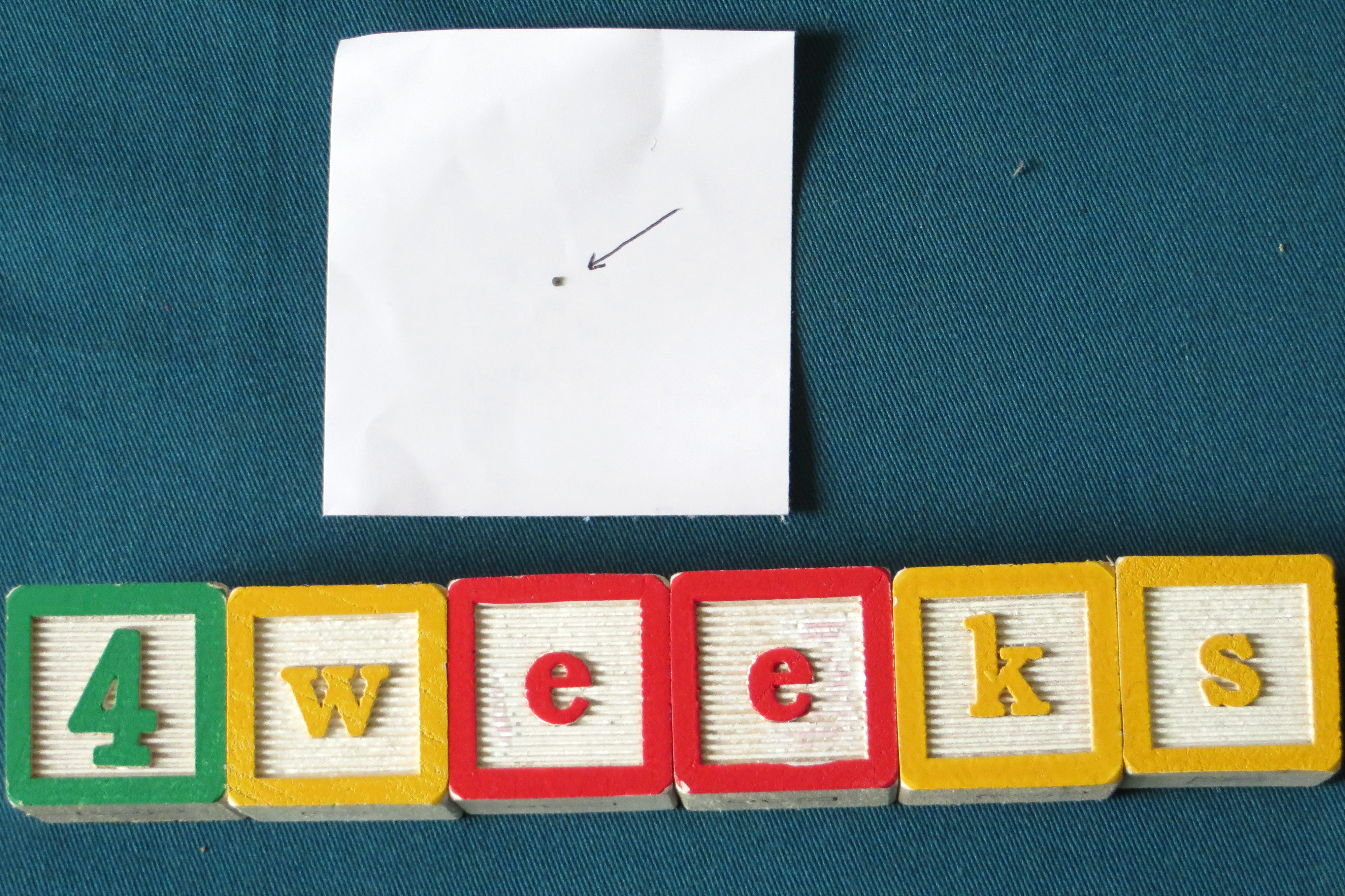 Well, according to my non-medical estimate, I hit 4 weeks on March 10.