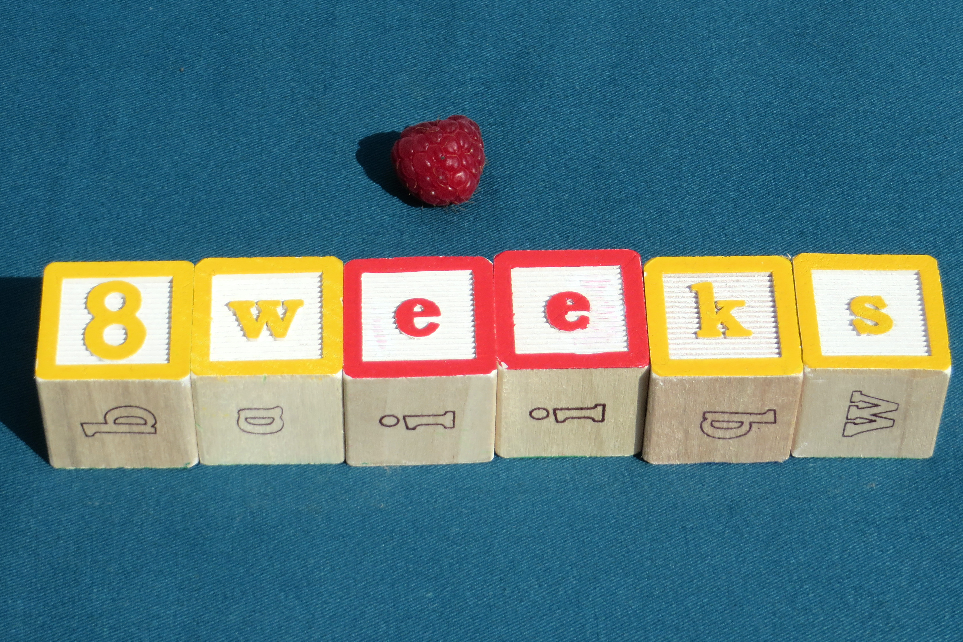 Week 8: Baby is the size of a raspberry! And apparently looking less like a reptile with a tail. 🙂 We’re moving in the right direction!