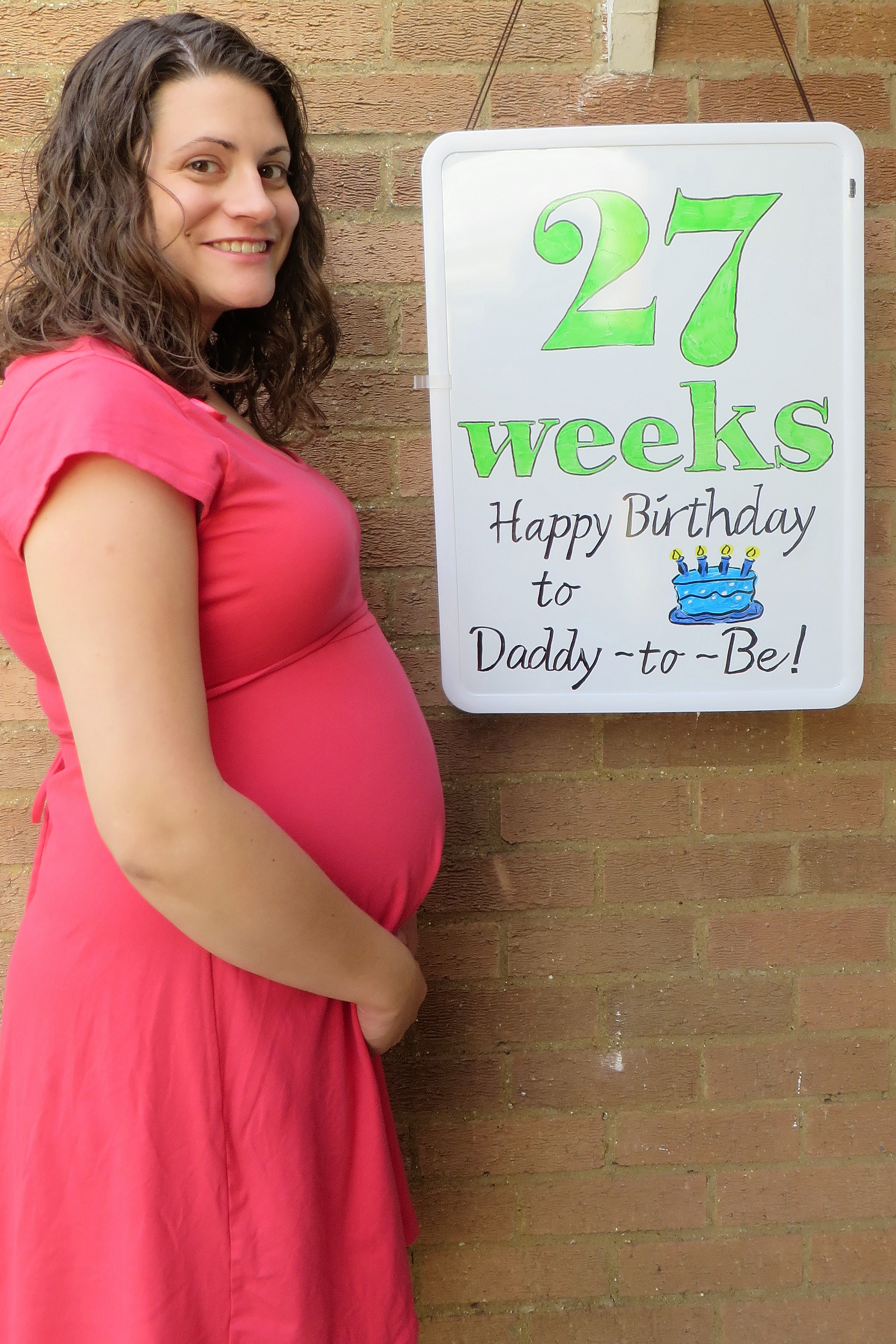 Week 27 and Baby Kiel is the length of my laptop! He or she is now 14.5″ long and weighs 2.25 lbs.
