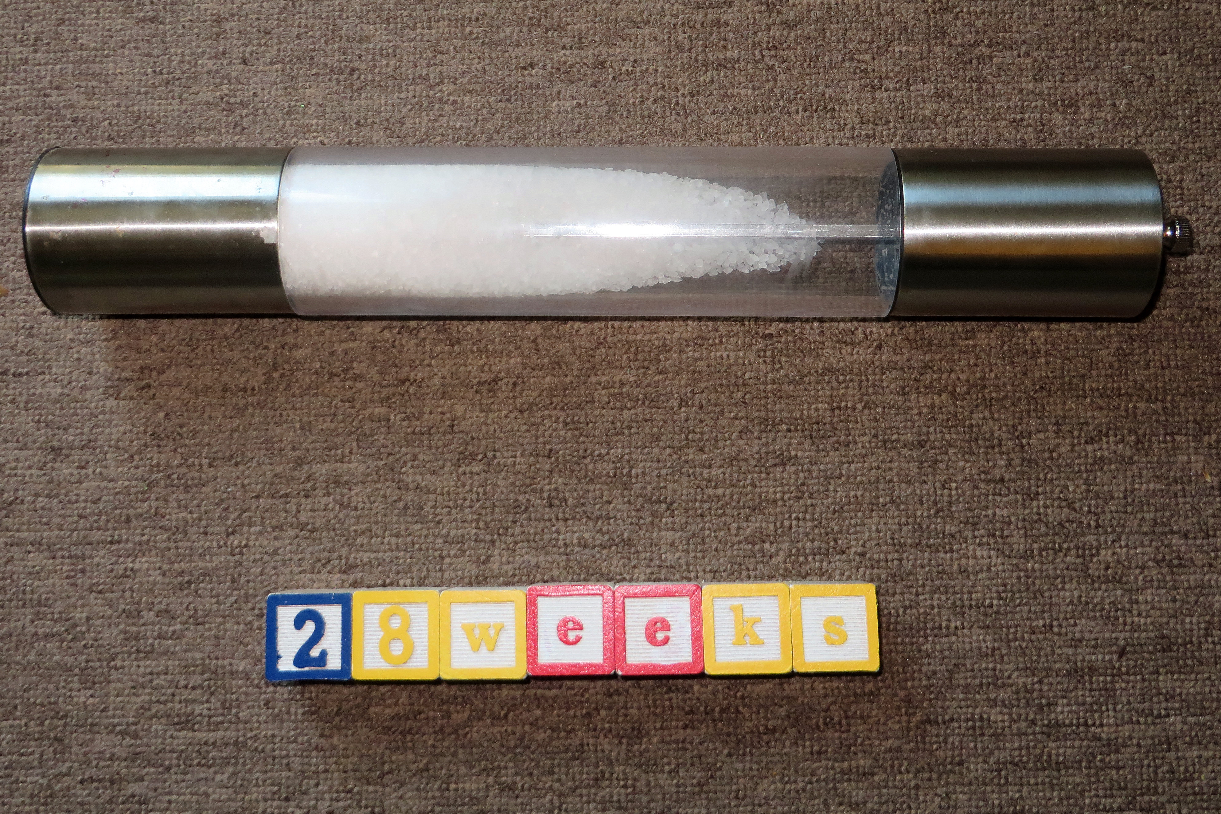Week 28 and Baby Kiel is the length of this salt grinder! He or she is now 15″ long and weighs 2.5 lbs. Sometimes I just can’t get over how big our little one is getting…