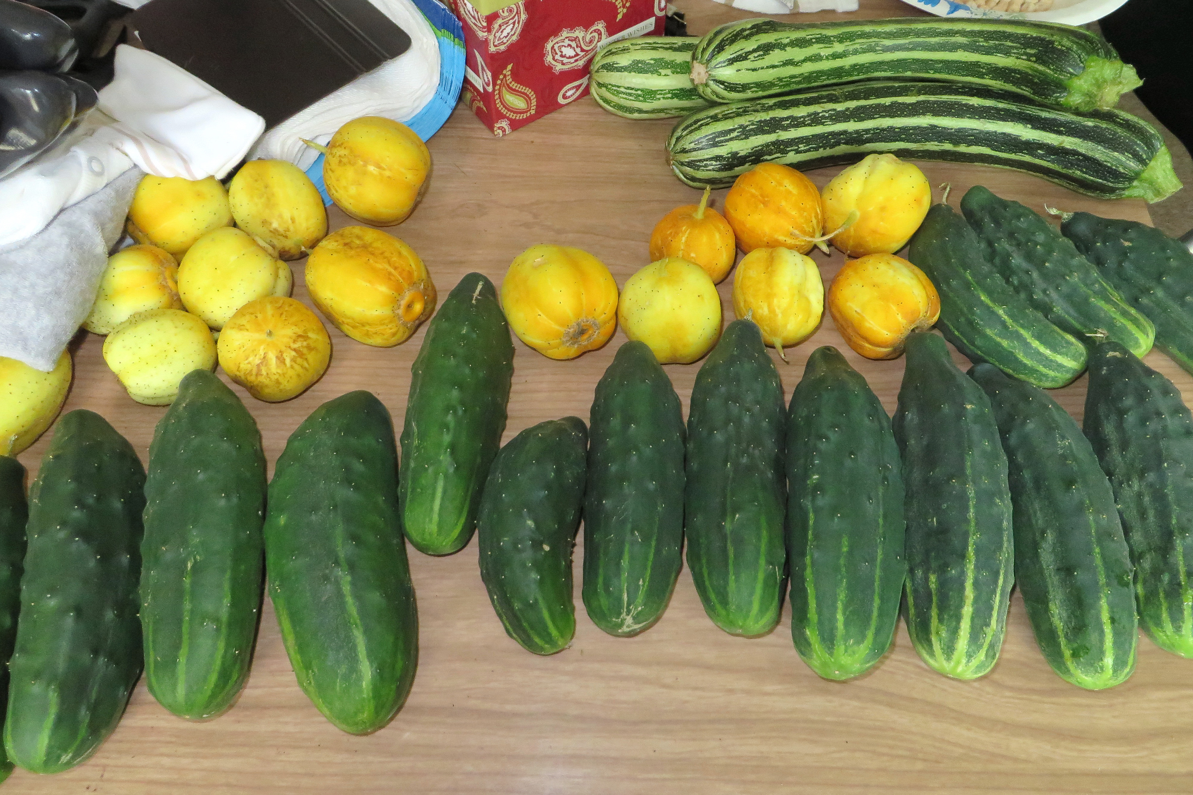 The garden has been giving us LOTS of zucchini and cucumbers… so that was my inspiration! Now… any good recipes or uses for a lot of cucumbers?