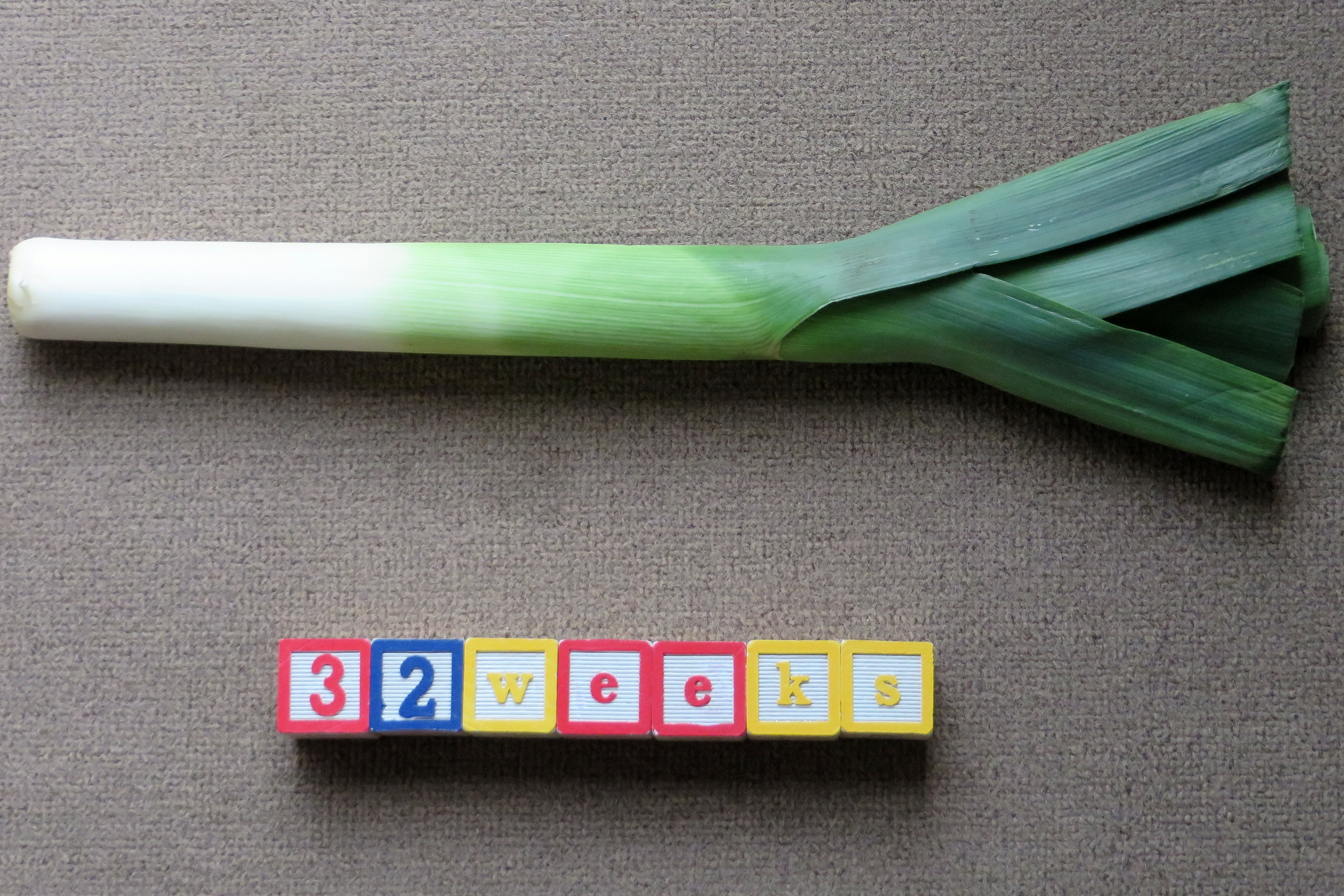 Baby Kiel is now the length of a leek! He or she is almost 17″ long from head to heel and is weighing in at about 3.75 lbs. Our baby’s digestive system is ready to go, but his/her lungs are still developing. Apparently, Baby is sleeping 90-95% of the day, but I don’t know if I believe that, haha! Our little one is still quite active in there.