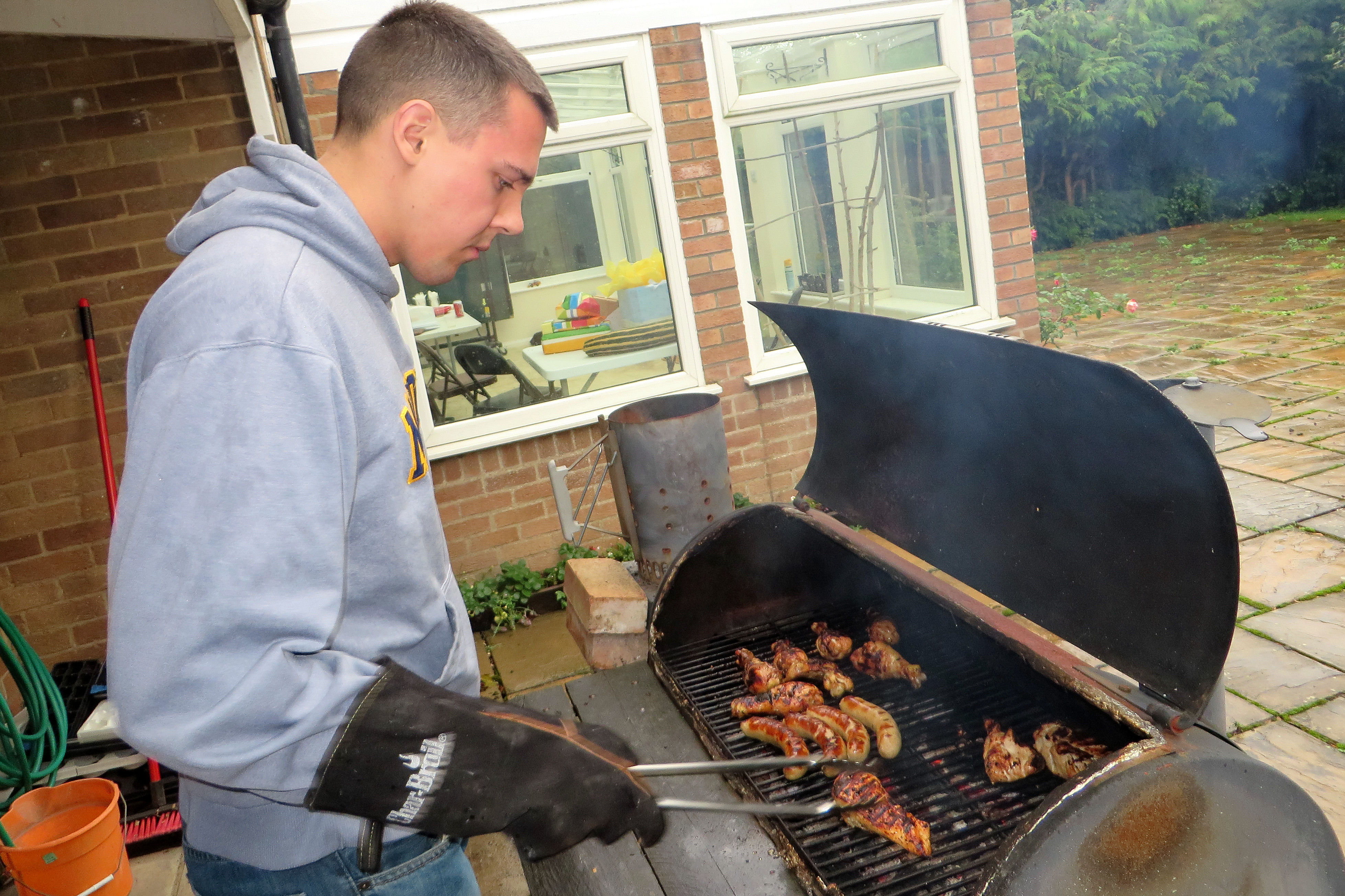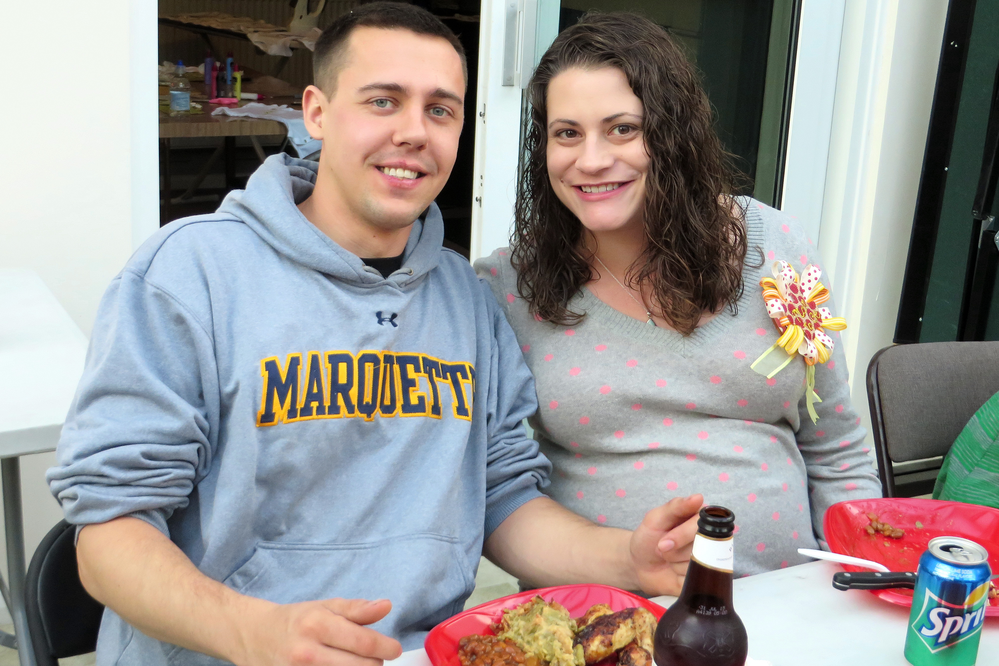 Andrew was in charge of the grill, of course. He marinated chicken pieces and grilled them for dinner. Some people brought some brats for him to grill too. Everyone else brought sides, and it all was delicious!