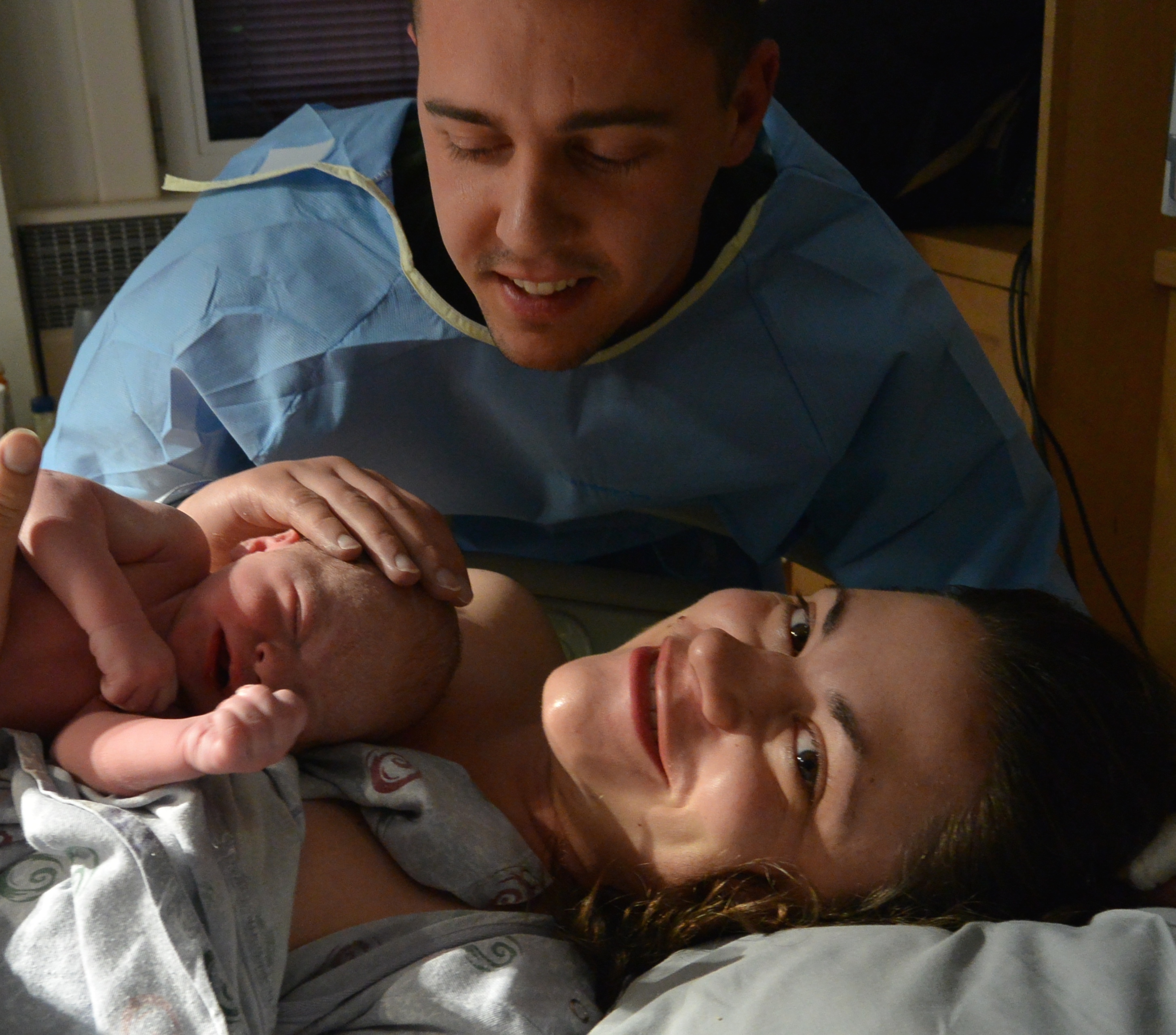 Andrew says I looked euphoric after Gerrit was born. I’m sure I was! The relief after all that pain was wonderful. And it was amazing to see this tiny human on my chest that had been inside me for so many months.