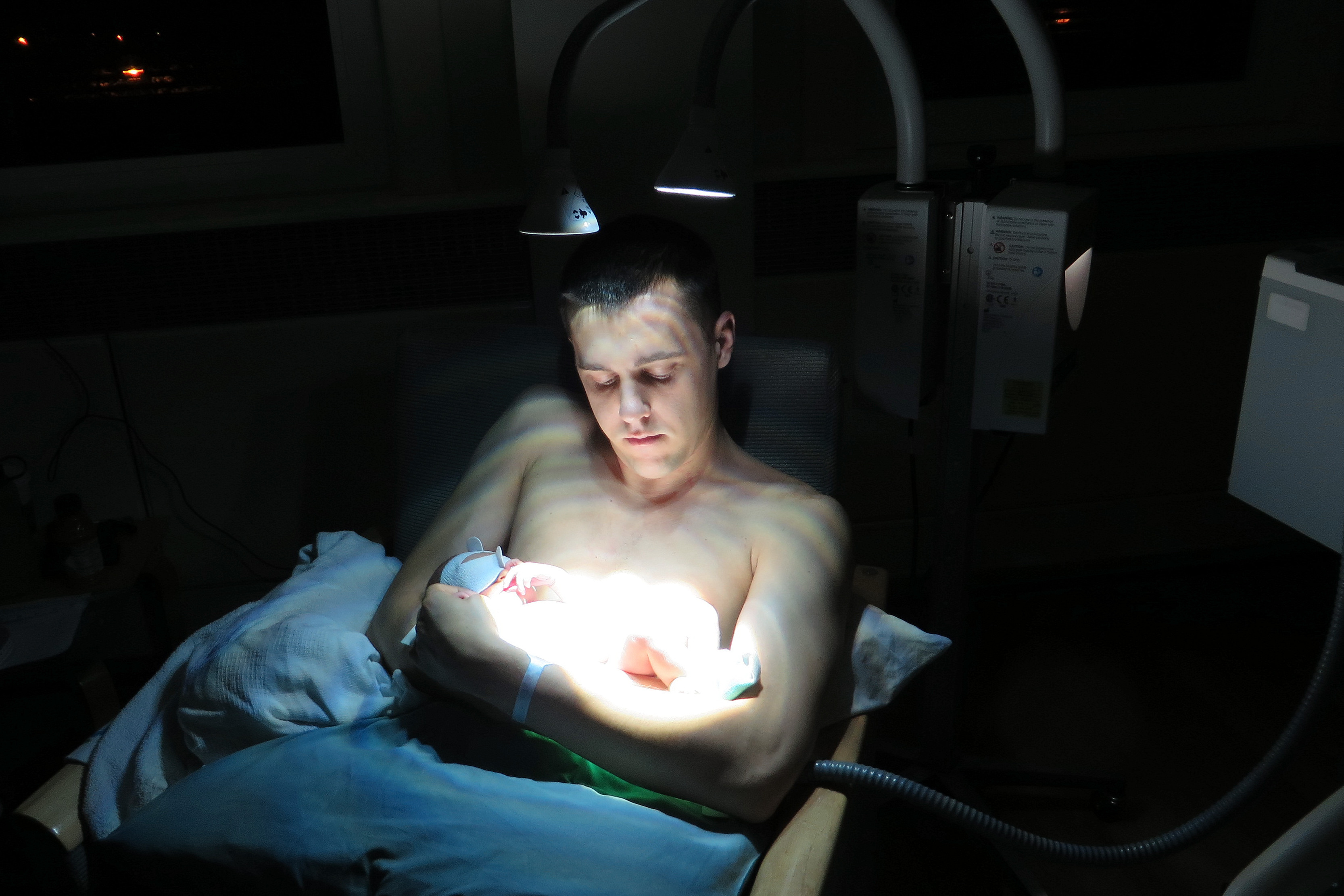 Andrew ended up telling the nurses that he was going to hold Gerrit under the lights instead of leaving him in the bassinet. It was the only way we could keep him calm enough to sleep.