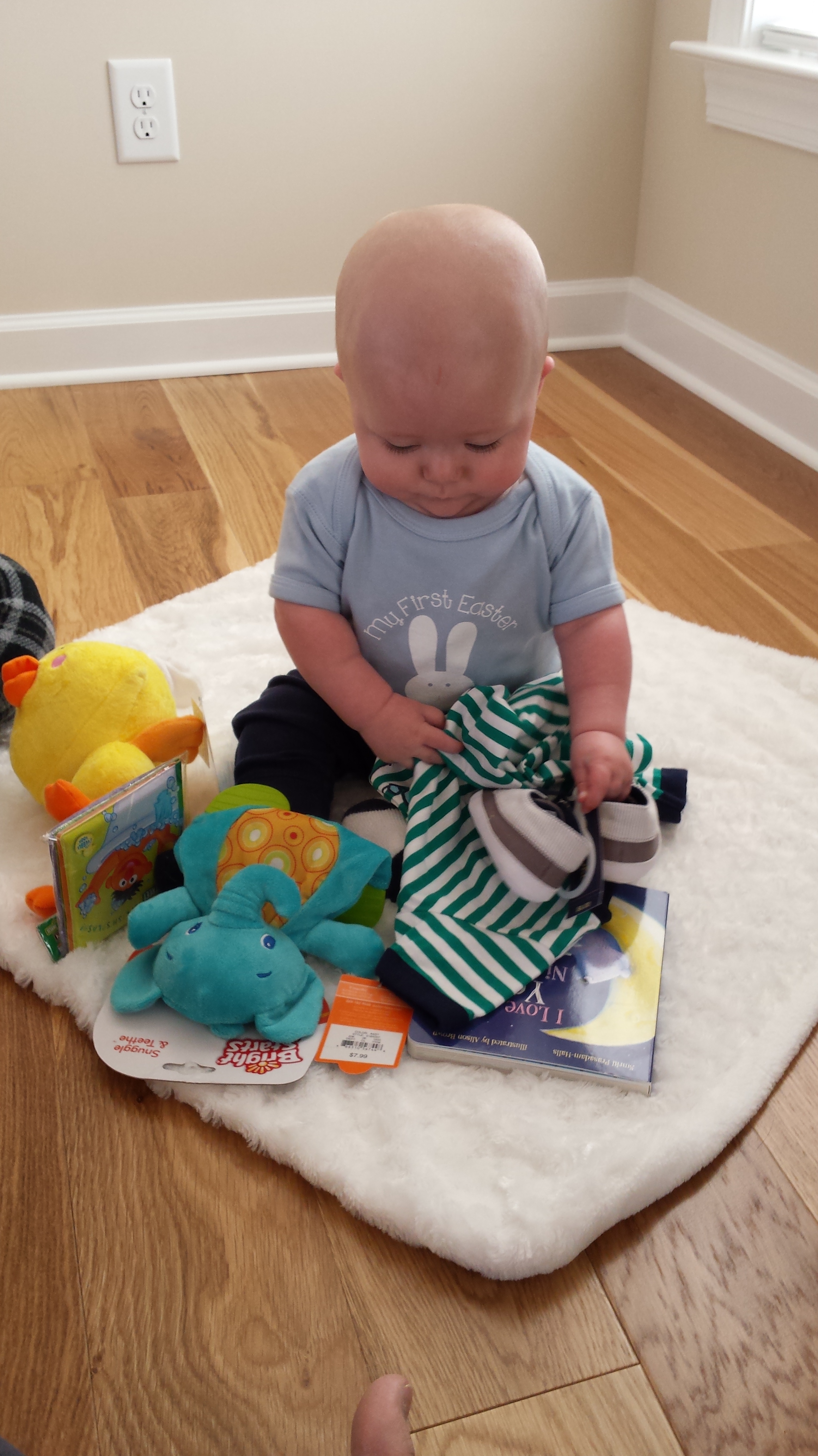 Likes & Dislikes: Gerrit still likes standing on us a lot. He also likes sitting now that he’s able to! I think it makes it easier on both of us during playtime now that he can sit on his own.