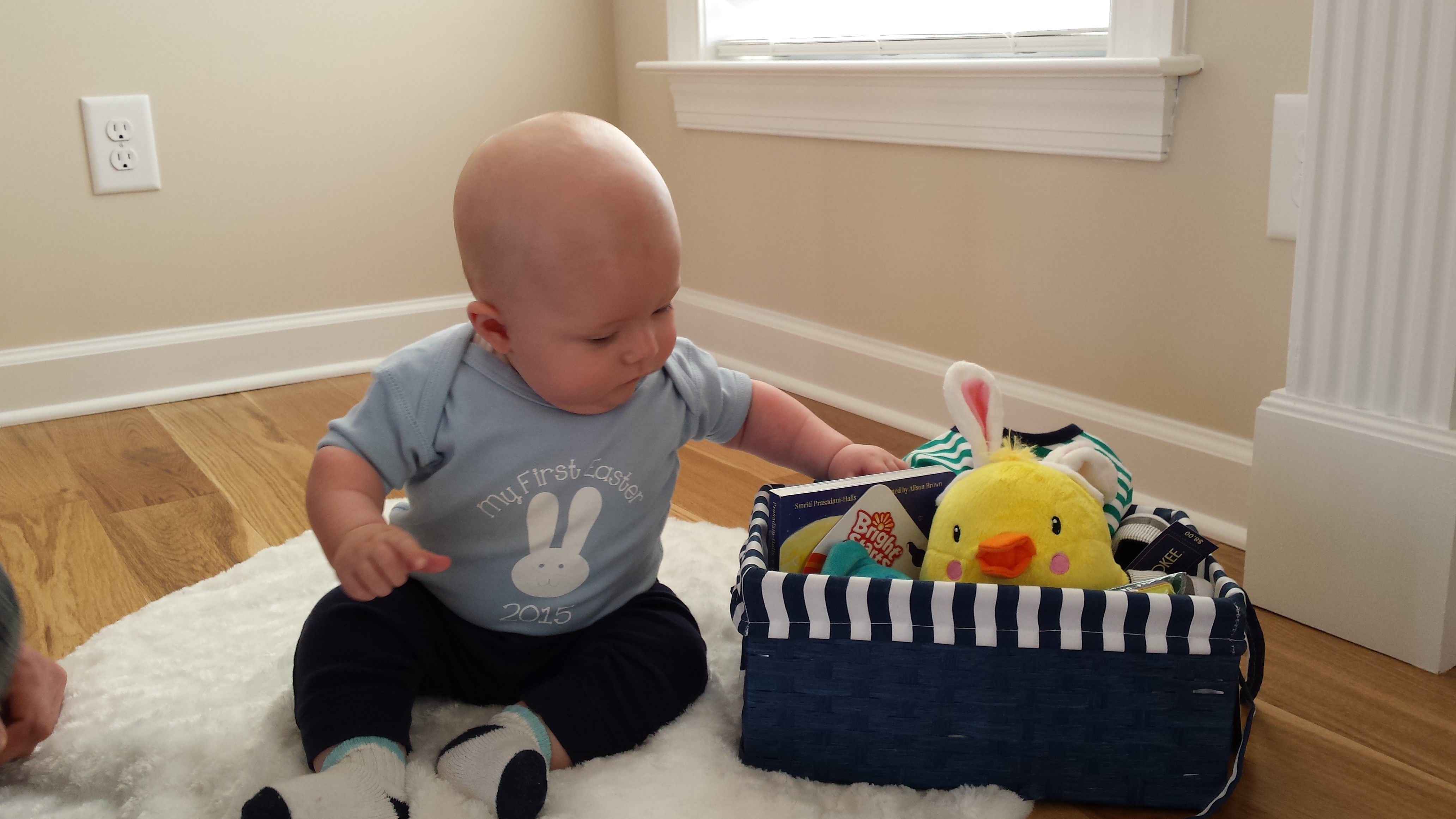 Naps are starting to get better. After Gerrit turned 5 months, he was still taking 4 naps a day sometimes, but over the course of the month, that went down to 3 naps. I still nap with him at least once a day (usually the morning nap). His long nap of the day is about 2 hours long, and his short ones are 30-45 minutes long. By mid-April, Gerrit was occasionally falling asleep on his own again for some naps too!