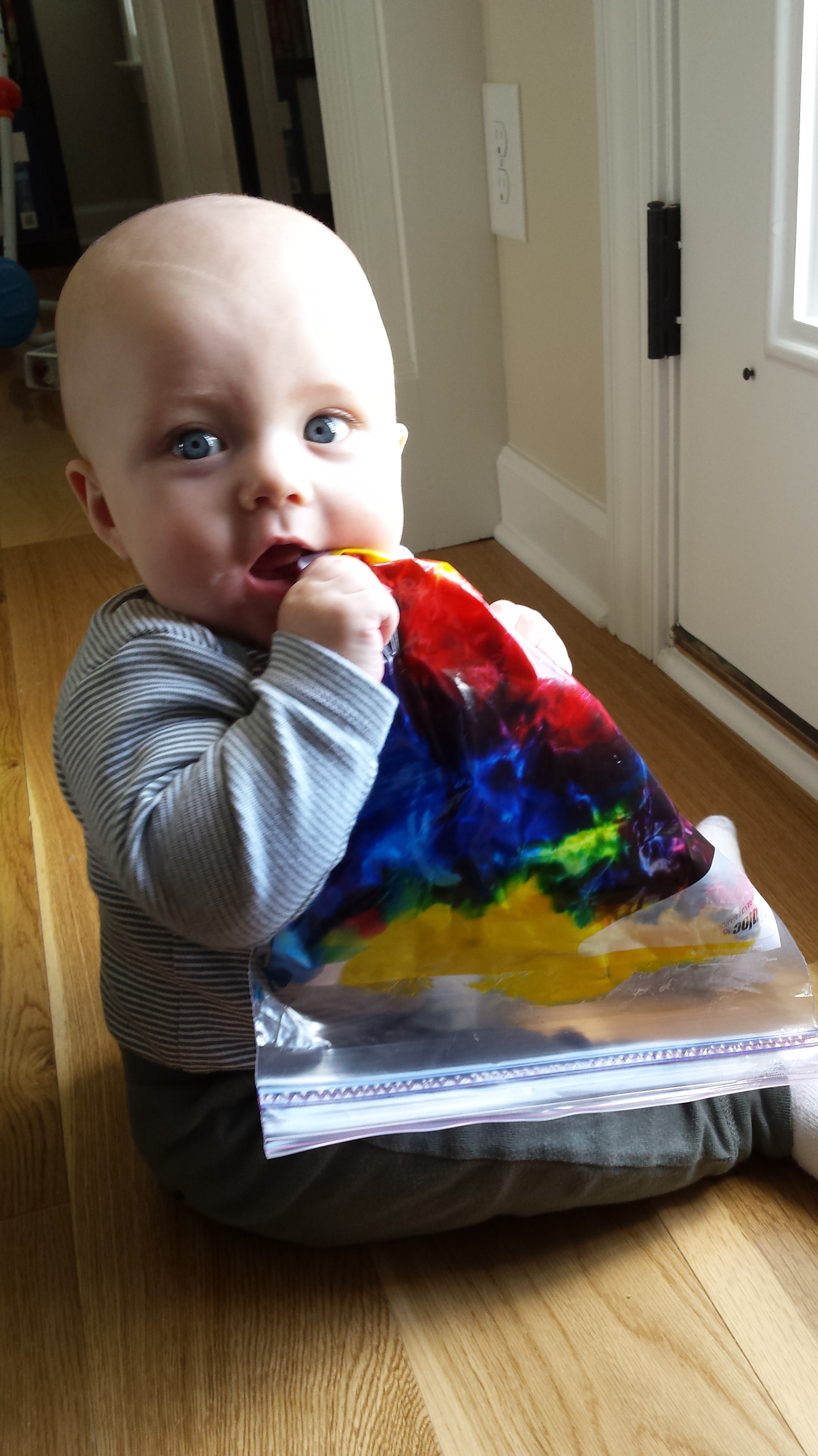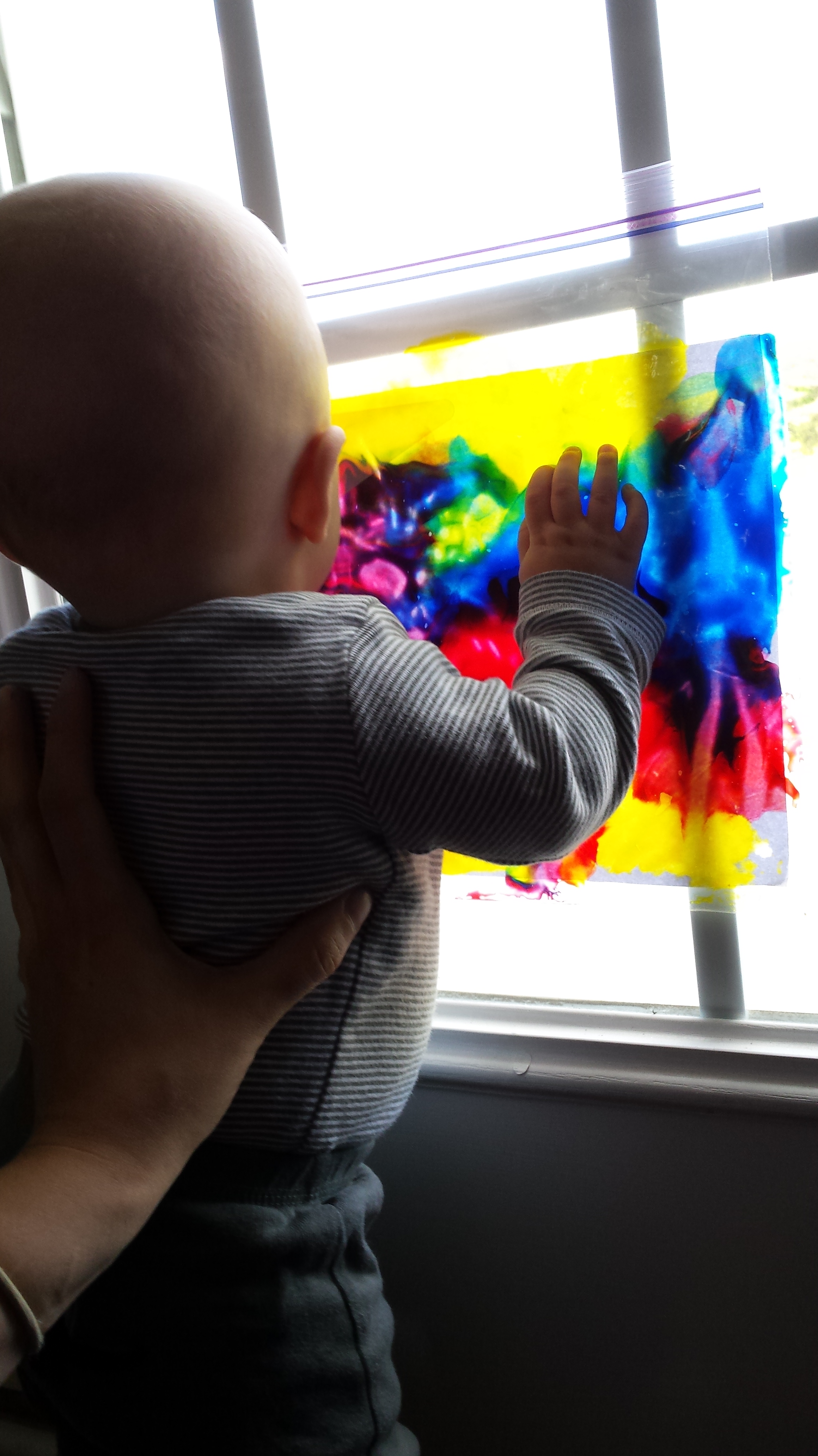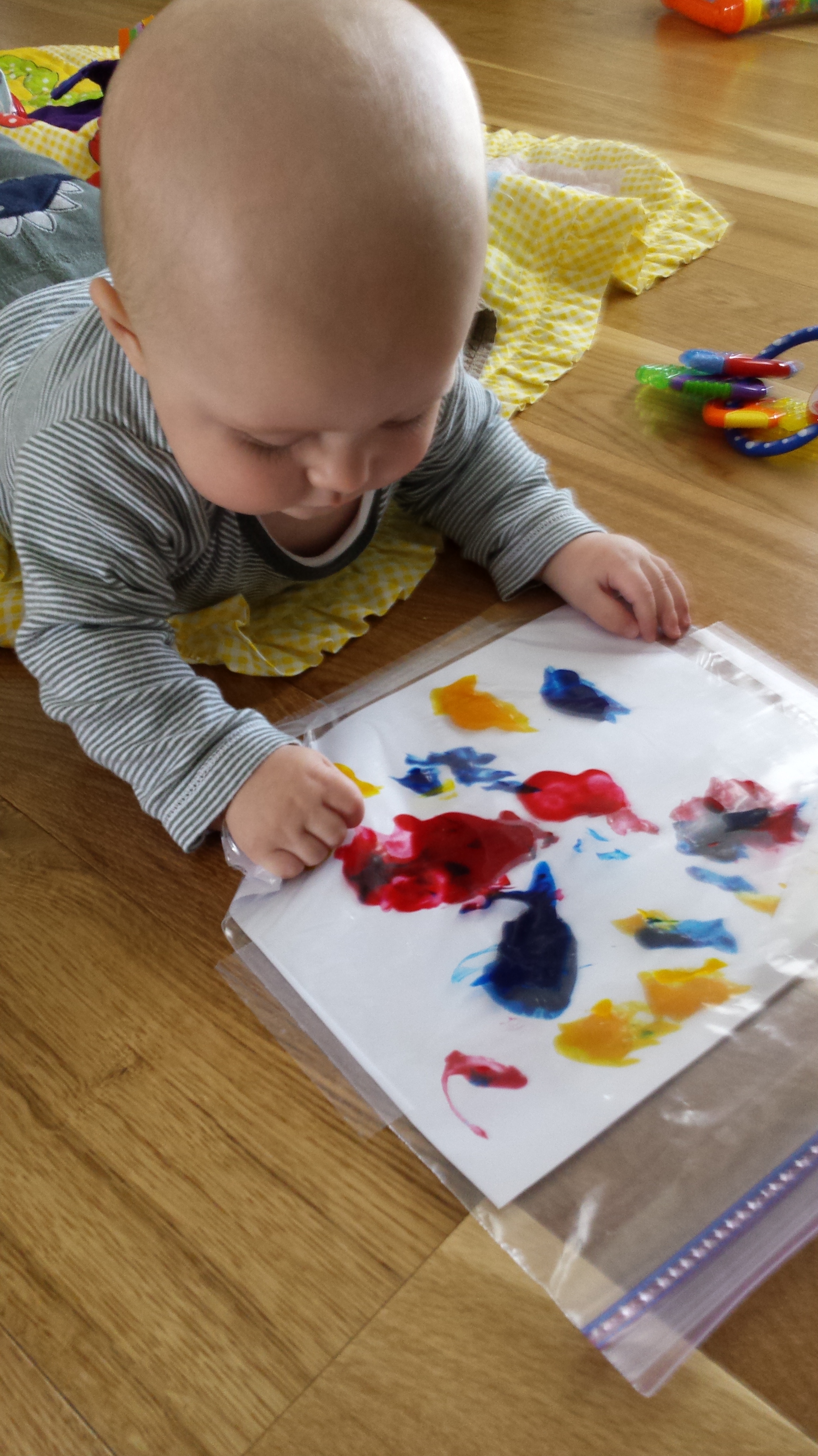 Gerrit made his first piece of artwork the day he turned 6 month! I started it taped to the floor, but he wasn’t loving tummy time.