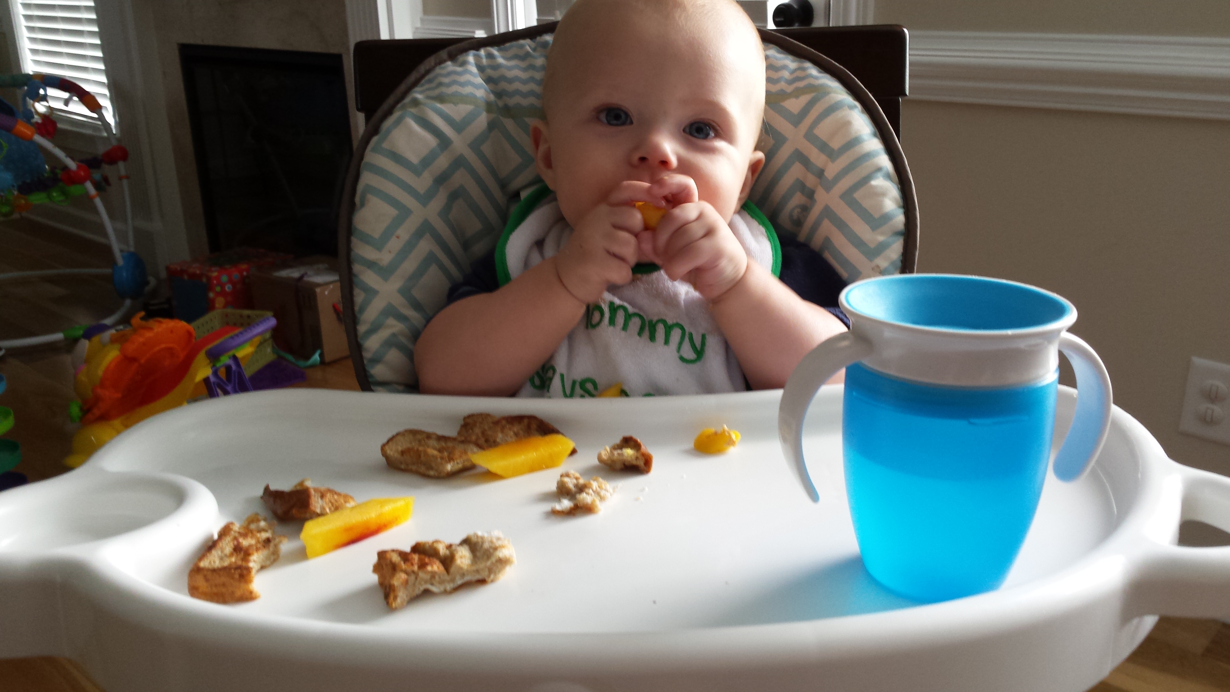 Some favorite foods? Blueberries and nectarines are probably his favorite fruits. He still enjoys green veggies, especially broccoli. Although Gerrit will sample any meat, I think he still prefers having a slice of steak or pork to gnaw on. Chicken seems to be a bit dry for him yet, and he’s not impressed with ground beef. Carbs are hit or miss: sometimes he really seems to enjoy pasta and bread and other days it gets swiped to the side for fruit or veg instead. He also LOVES these: