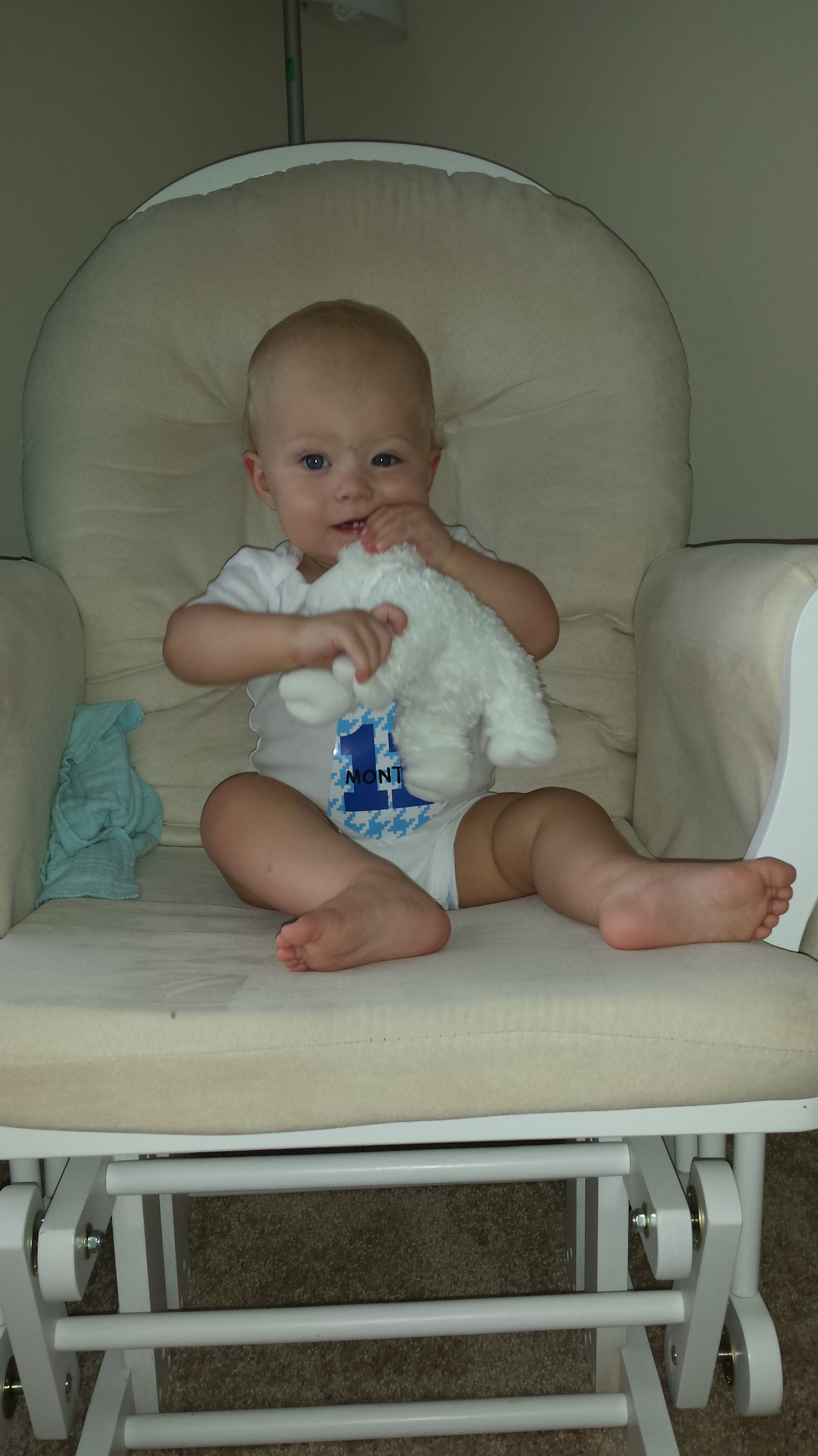 Likes & Dislikes: Gerrit still loves moving! He no longer army crawls at all; he’s on all fours anytime he’s not standing or trying to walk. And he’s speedy! I suspect that once he gets this walking thing figured out, he will not be walking… he’ll be running everywhere!