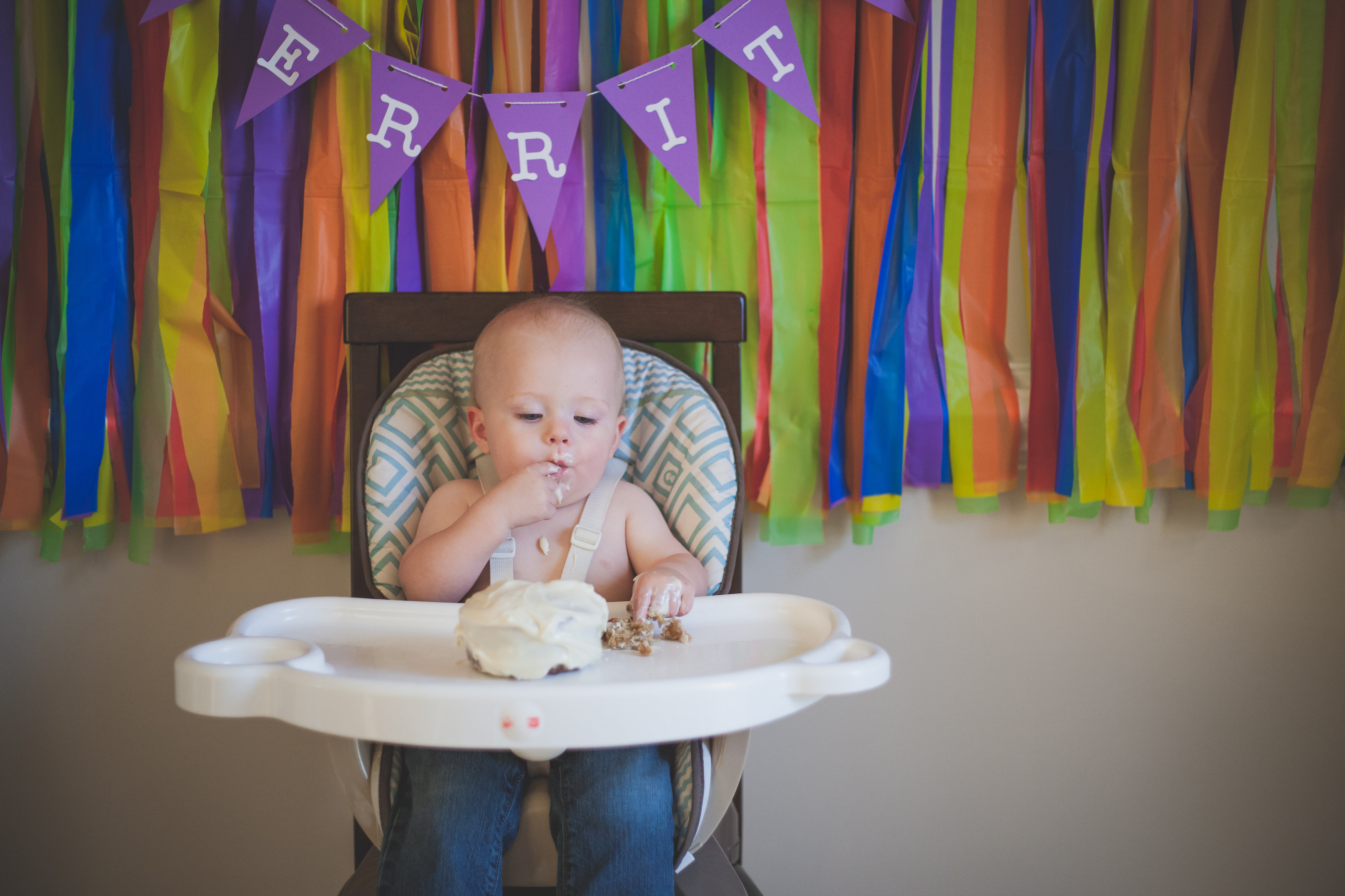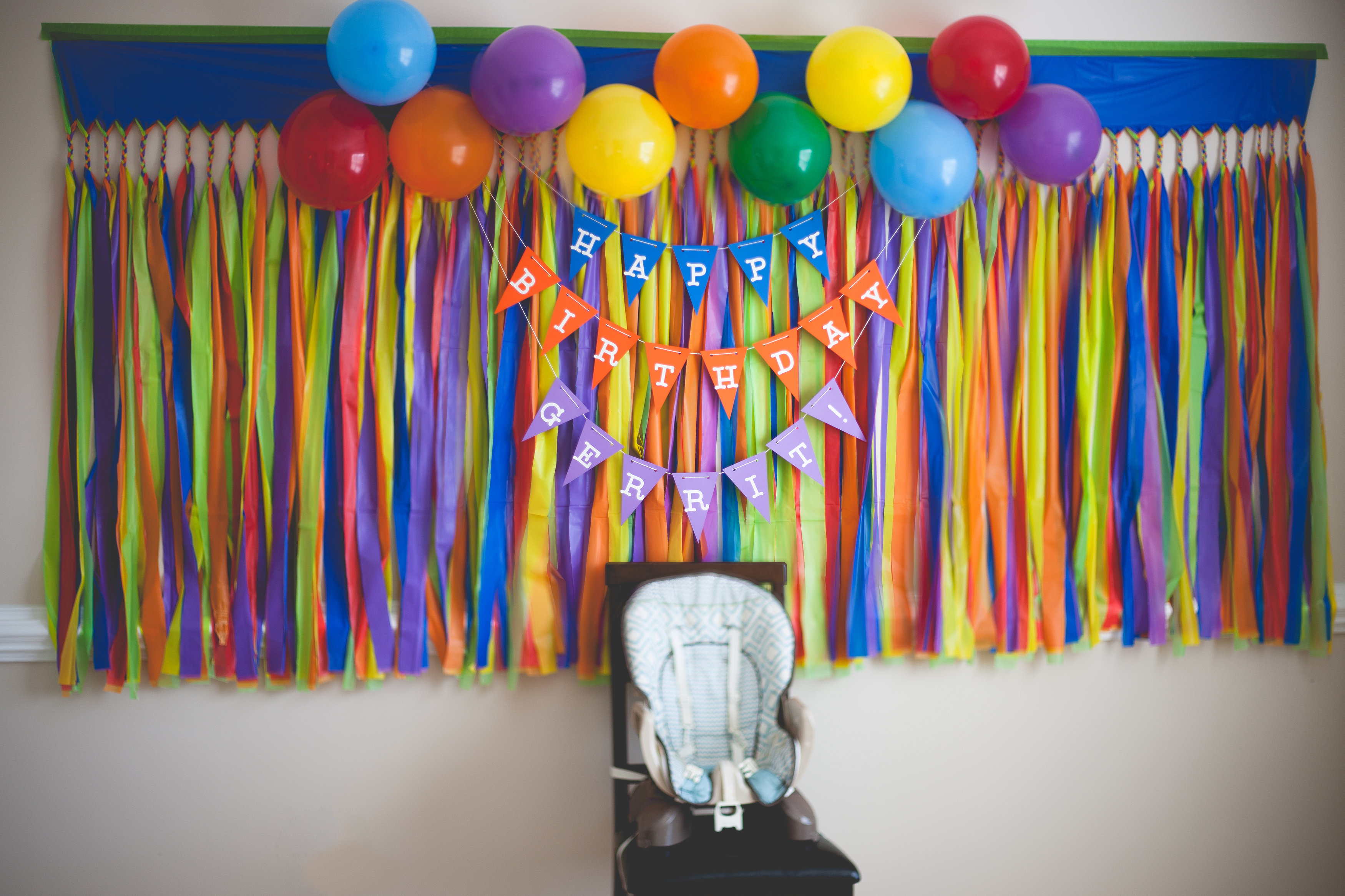I loved how the backdrop for Gerrit’s cake smash came together! I had seen the idea on Pinterest using 3 cheap plastic tablecloths, but I figured it would be even better with 6 of them. My mom and Andrew’s mom put it all together, and I couldn’t have been happier with the result. It’s so bright, colorful, and festive! My Cricut made the banner come together quickly to go above Gerrit’s high chair.