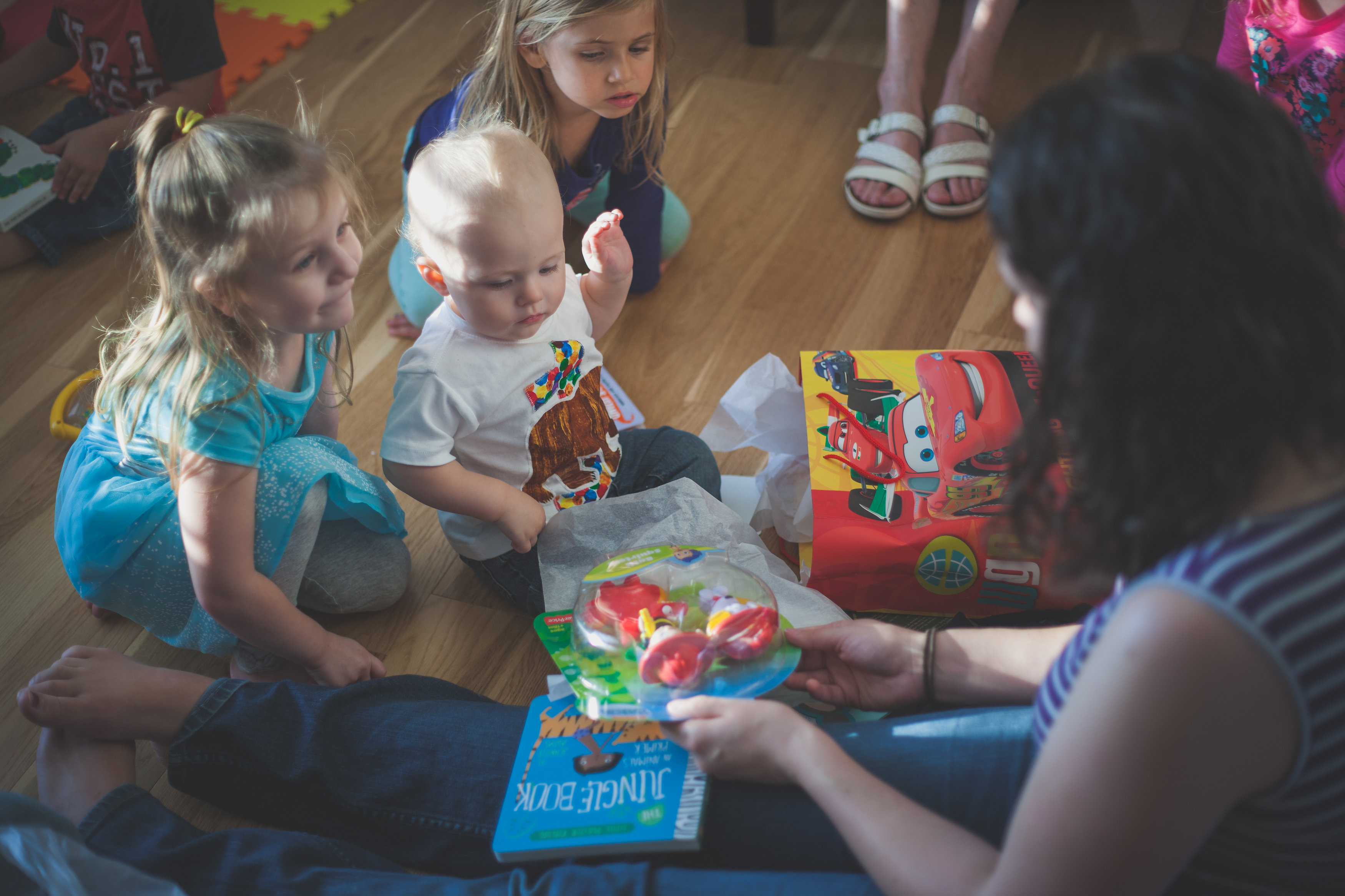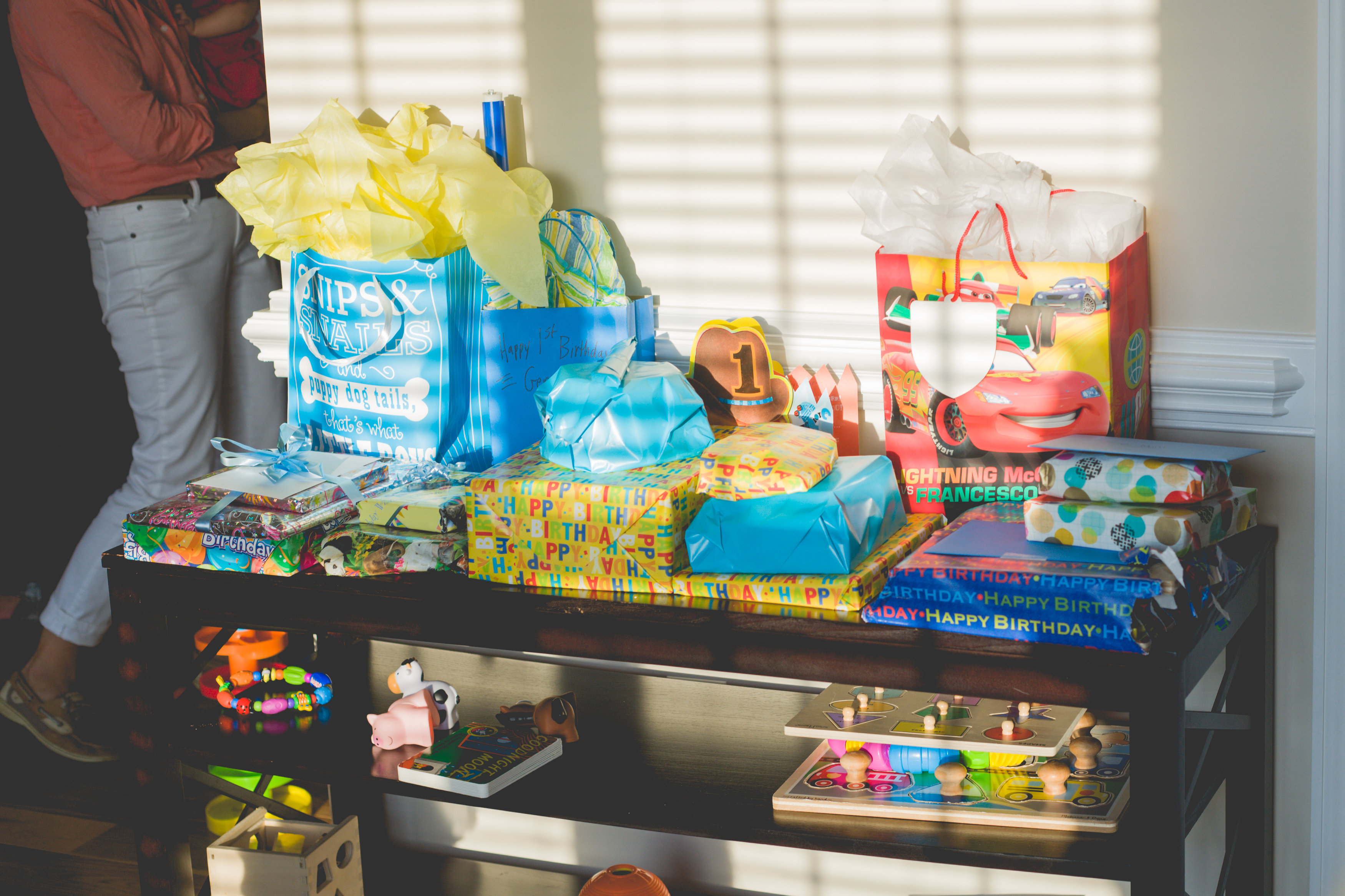 I originally looked into some activities for 1-year-olds to do at the party, but in the end I just pulled out some of Gerrit’s favorite books and toys and put them on the shelves of the gift table. I’m so glad I decided to do that: so much less for me to do, and all the kids (from 6 months to 6 years) enjoyed the toys and books. I was pleasantly surprised!