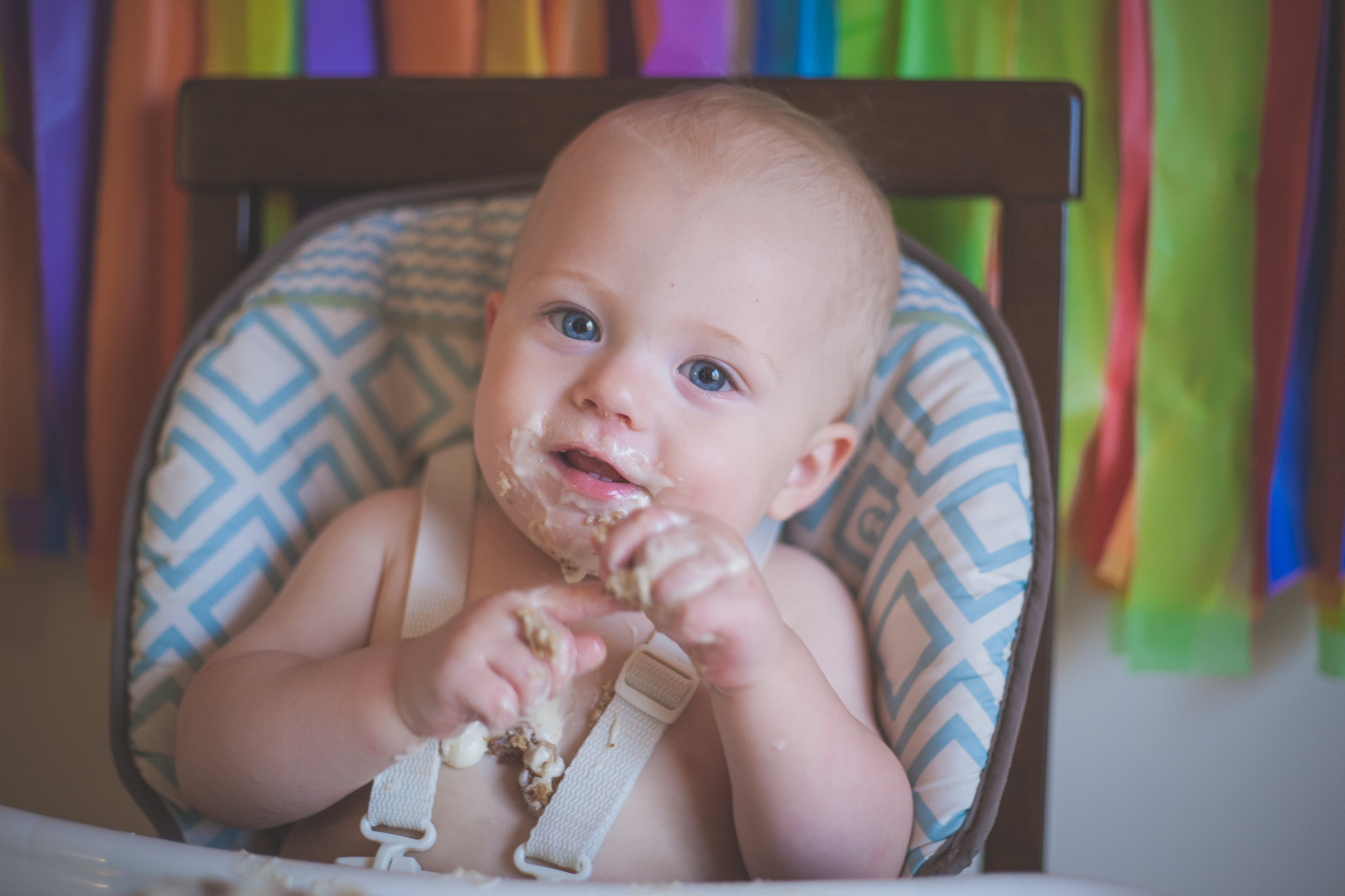 Gerrit loved all the kids, and he’s at the age where he really doesn’t care if anyone opens his gifts for him, so I was happy to let the other kids help him out. Plus it made the process go a little faster. One-year-olds do not have a long attention span! And then we got to move on to the cake smash: