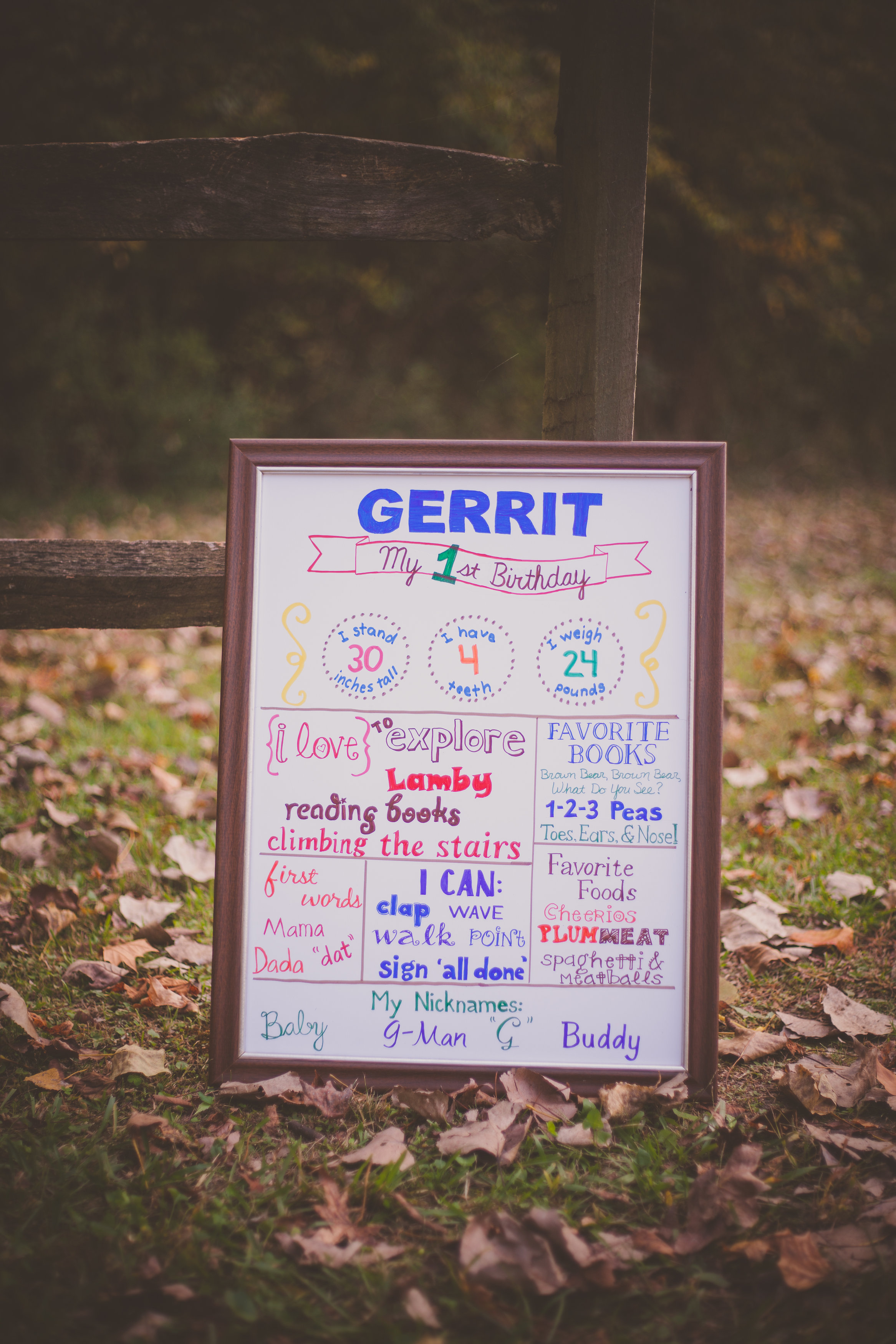 I wanted to get this sign done for his party, but it just didn’t happen. But I definitely wanted it done for his photos, since I had put a fair amount of time and energy into it! It’s not perfect (ahem…spacing between ‘plum’ and ‘meat’ for one haha), but I’m generally happy with how it came together. I hadn’t hand-lettered anything since the white boards from when I was pregnant. And those boards could be erased and re-done as many times as I needed. This was permanent!