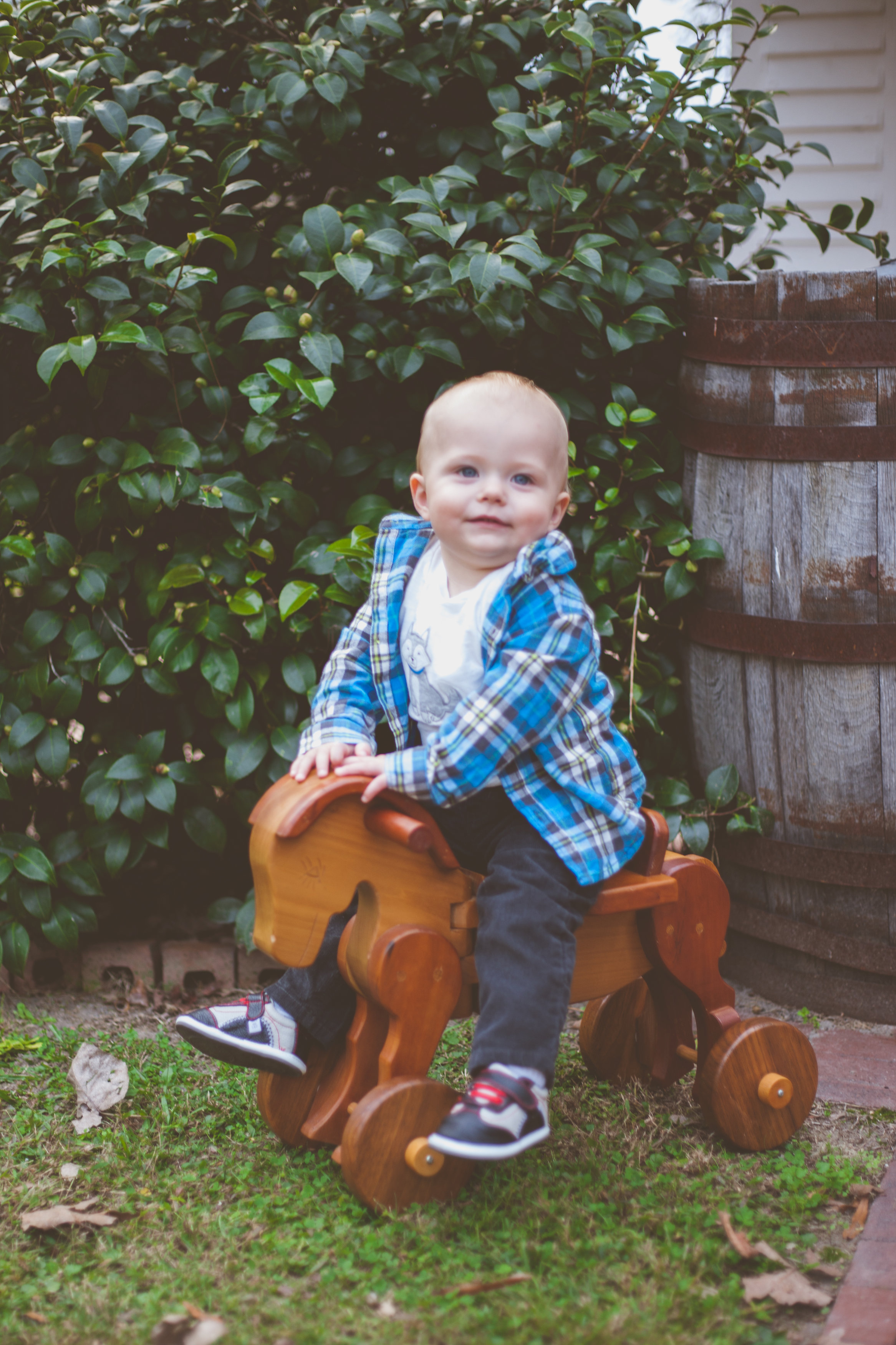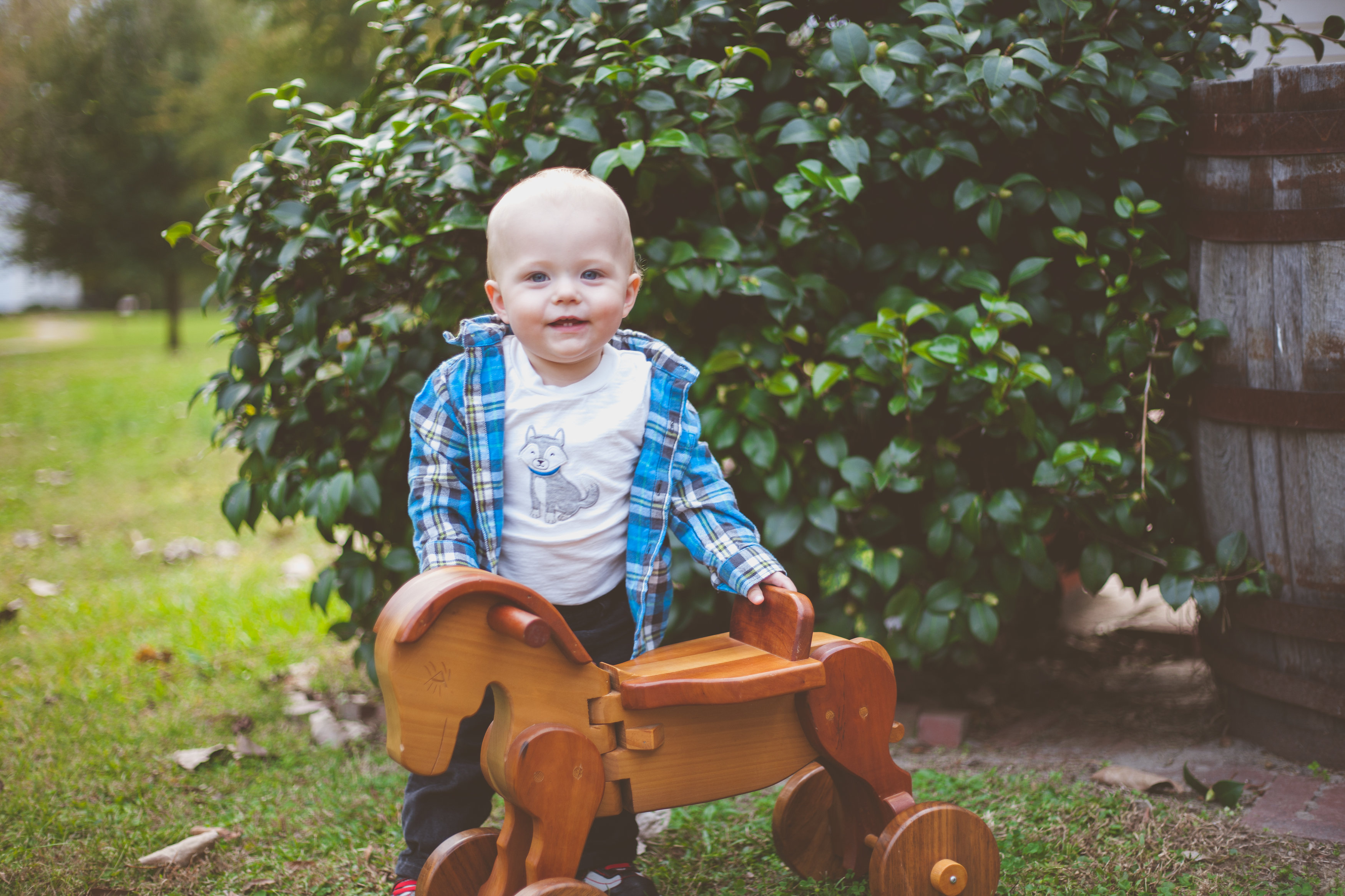 This wooden horse was built by my grandpa, and Gerrit loves pushing it around his room. He’s not quite big enough to ride it yet, but we thought it would make such a cute prop for his first birthday photos.