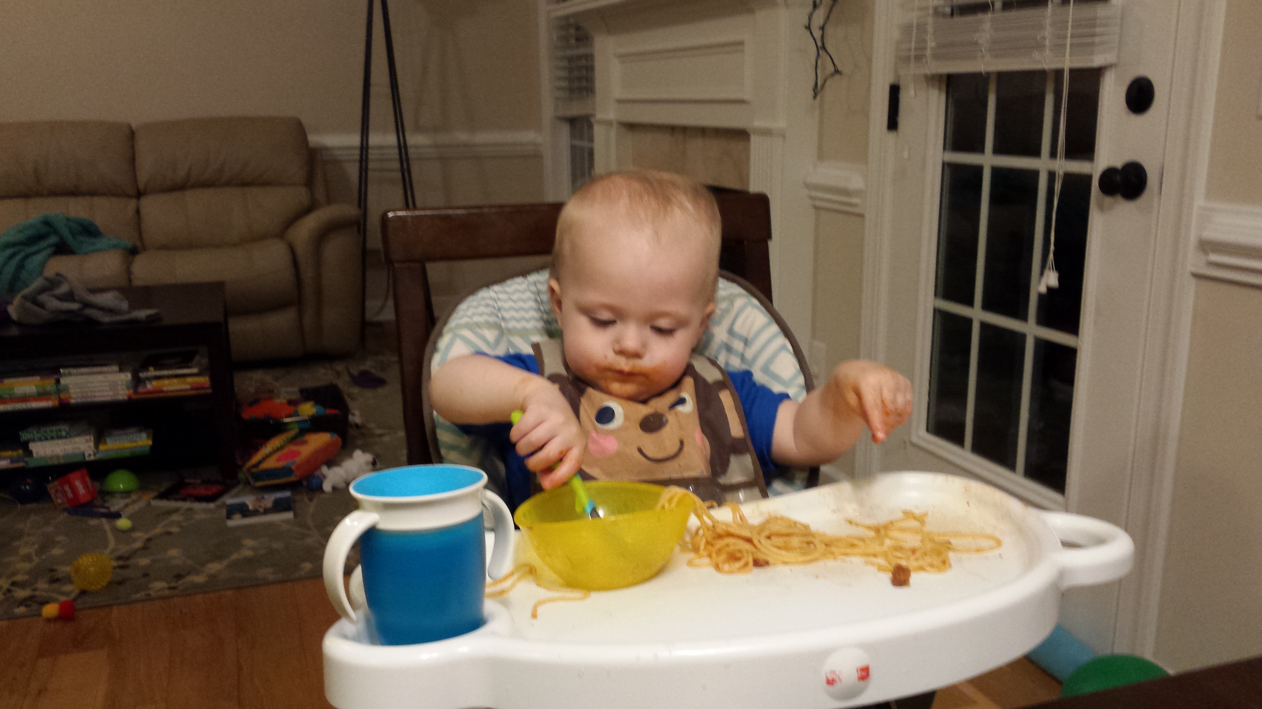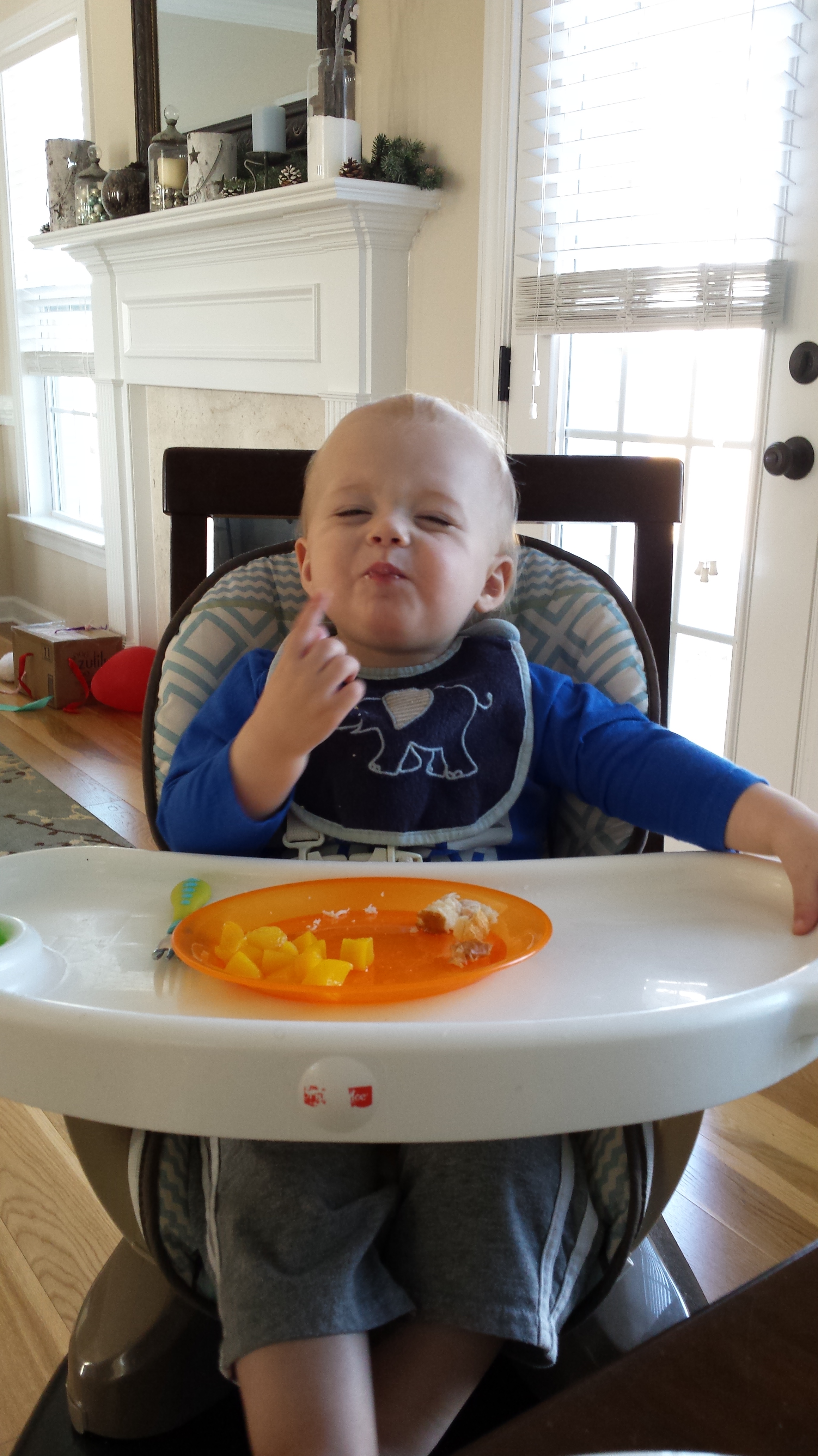 Eating: Around 14 months, Gerrit turned a corner with solids. He started eating more, eating more variety, and eating more consistently. I was thrilled! I had to get used to spending a lot more time at the table. Usually Gerrit would move his food around, maybe take a few nibbles, then sign “all done.” Now we are sometimes at the table for half an hour!
