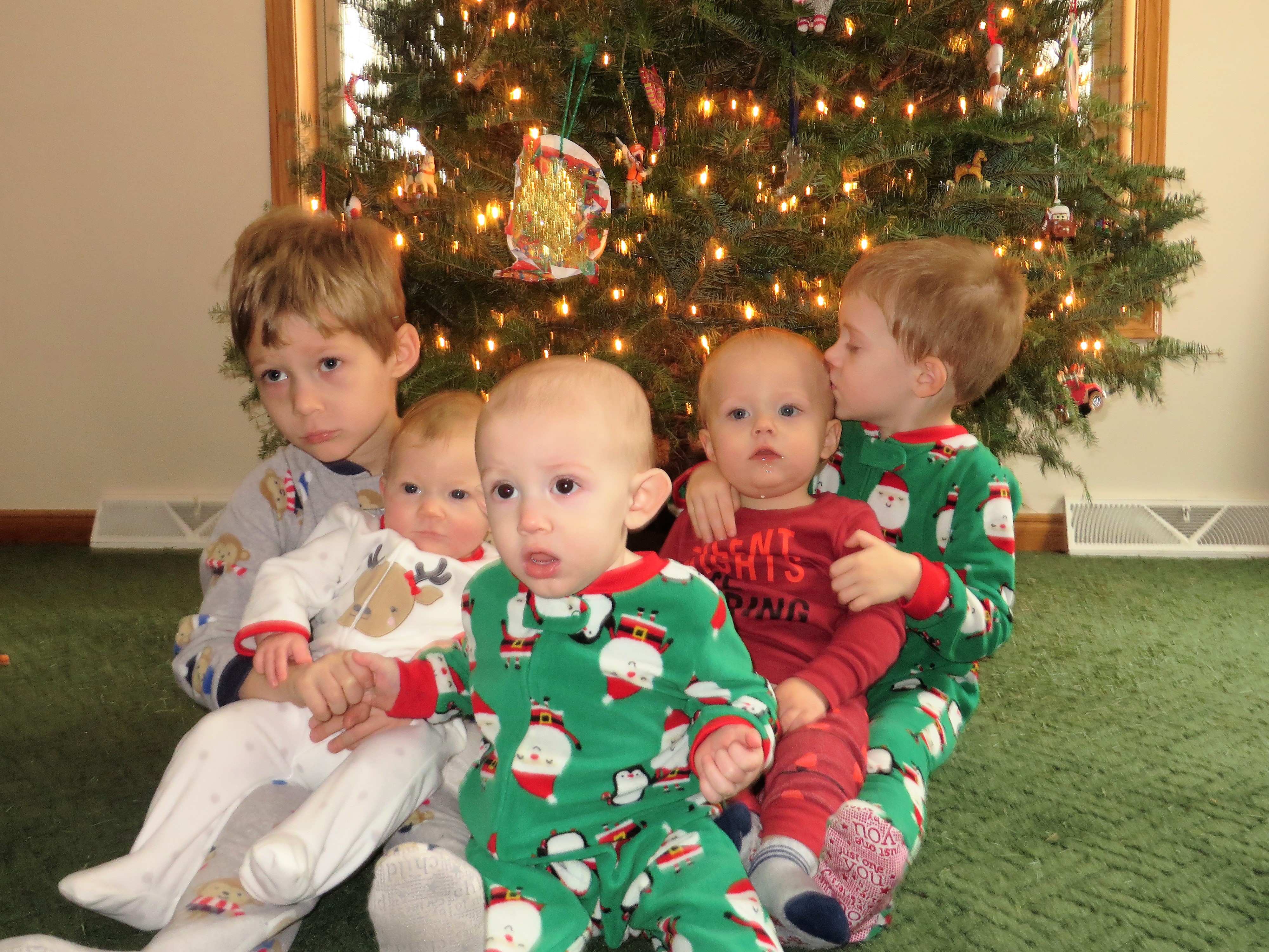 I wish I had a super cute picture of all of the cousins playing together, but I’m sure you all know that that is just not possible. So here’s one with 4 of the 5 cousins, haha. And this is the best one I had on my camera of the 5 of them by the Christmas tree: