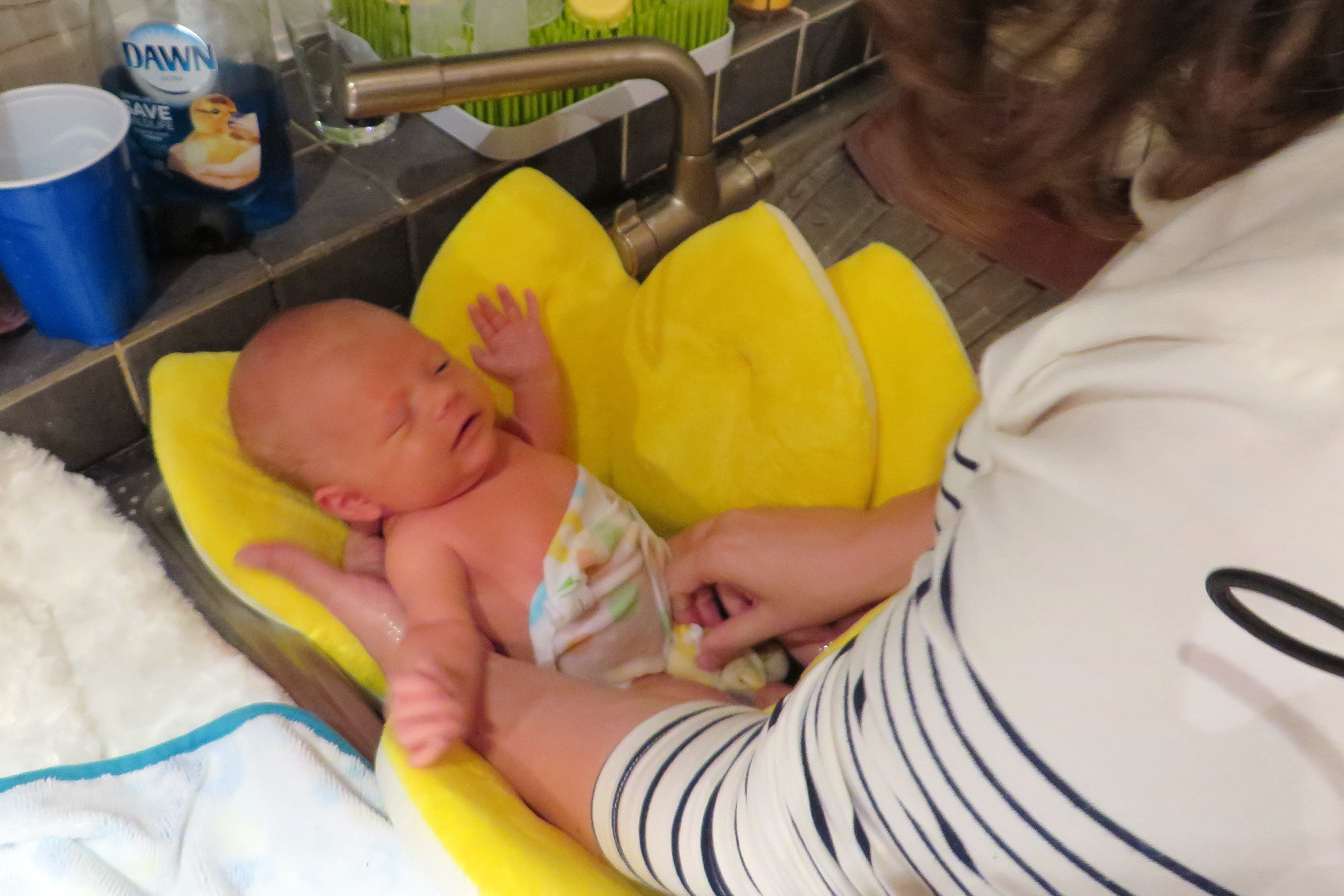 Look at that itty bitty Baby G! Ah, I can’t even believe he was so tiny. Okay, back to my point… So even after Gerrit was getting too big for the sink and was close to sitting up on his own, I used the Blooming Bath in the bathtub. It was something soft for him to sit on, and it kept him from slipping around. Oh! And it didn’t take up a bunch of room. Our house in England didn’t have a lot of storage, and frankly, our new house doesn’t either.
