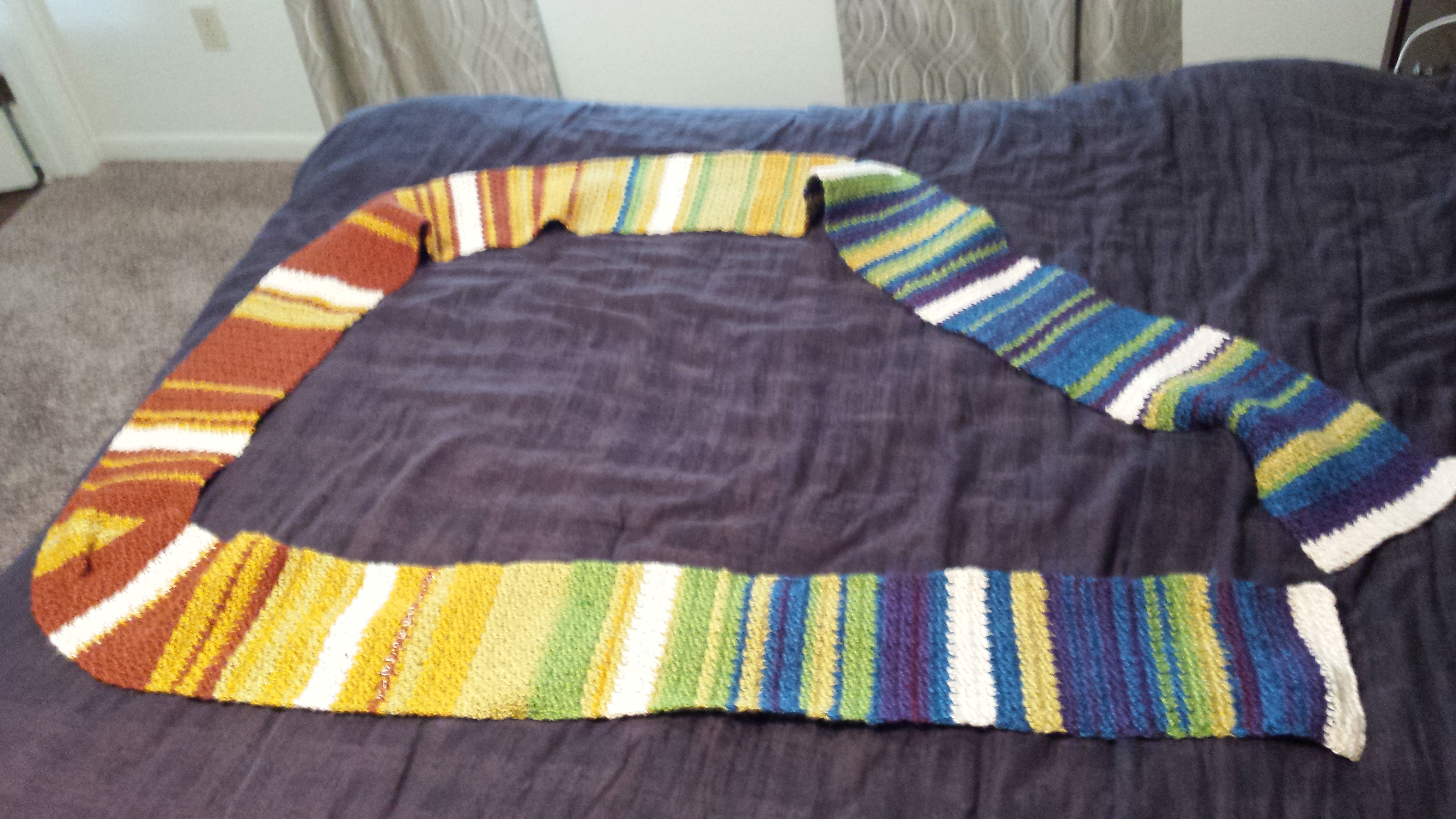 I first heard of temperature blankets when we were still living in England. I loved the idea of incorporating your local weather into something for the home, especially with moving as often as we do. I started tracking the daily temperature when we were living in England to make myself a temperature scarf instead of a blanket, but I never did finish it. Story of my life. But I did end up finishing temperature scarves for both my mom (using Chattanooga, TN temperatures) and my sister (using Mishicot, WI temperatures).