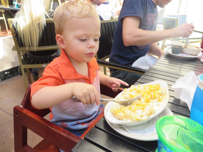 For breakfast Gerrit loves “mama cereal” (Special K Red Berries) and “dada cereal” (Frosted Mini Wheats) as well as pancakes. His favorite lunch is leftover pizza, leftover spaghetti & meatballs, and “purple mac” (Annie’s shells and white cheddar). Gerrit loves apples, strawberries, and raspberries, will occasionally eat some banana, and enjoys sharing oranges, grapefruit, and pomelo with Andrew. He used to love broccoli and cauliflower, but now it’s hit or miss. He has discovered a love of ranch dressing though, and he’ll eat a lot of spinach and celery if he has ranch to go with! He’s warming up to carrots, and he enjoys beets because they turn his tongue purple. 🙂 One thing we really don’t have an issue with is Gerrit eating enough meat: he often asks for seconds…thirds… as much as he can get when it comes to the protein portion of the meal. His favorite snacks are “blue Goldfish” (the vanilla cupcake kind), “Mimi Goldfish” (flavor blasted cheddar), graham crackers, and pretzels. He mostly drinks water, but he also likes whole milk, orange juice, apple juice, and lemonade. Just no “poke-poke” drinks (anything carbonated)!