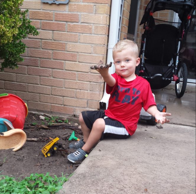 Gerrit is still a very active kid. He loves being outside! Living on base, we have several playgrounds in walking distance. I feel like we went to the one closest to our house at least once a day when the weather was good (so 90% of the time). He developed a love of being pushed on the swing. He would swing for hours if we would agree to push him for that long! Gerrit still enjoys getting wet and dirty: he loves his water table & sprinkler, he is always in the dirt and rocks, and he will make mud whenever he can.