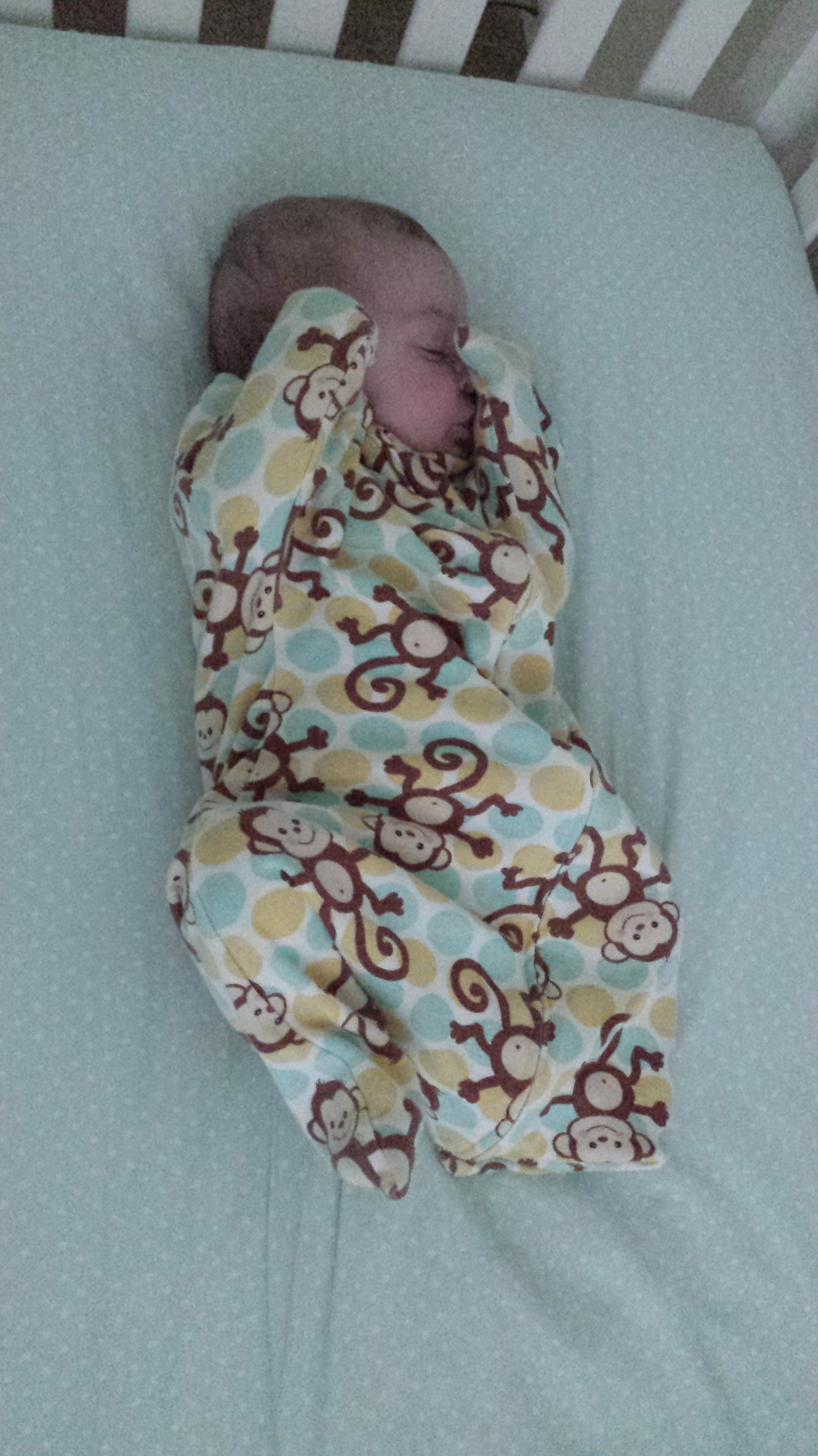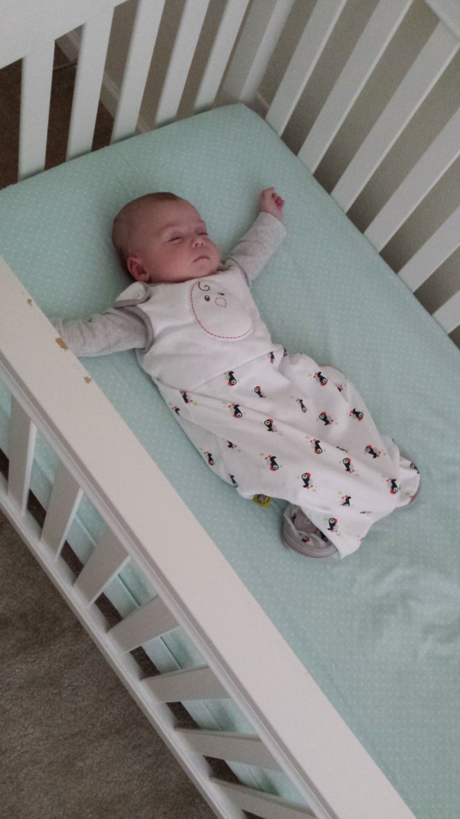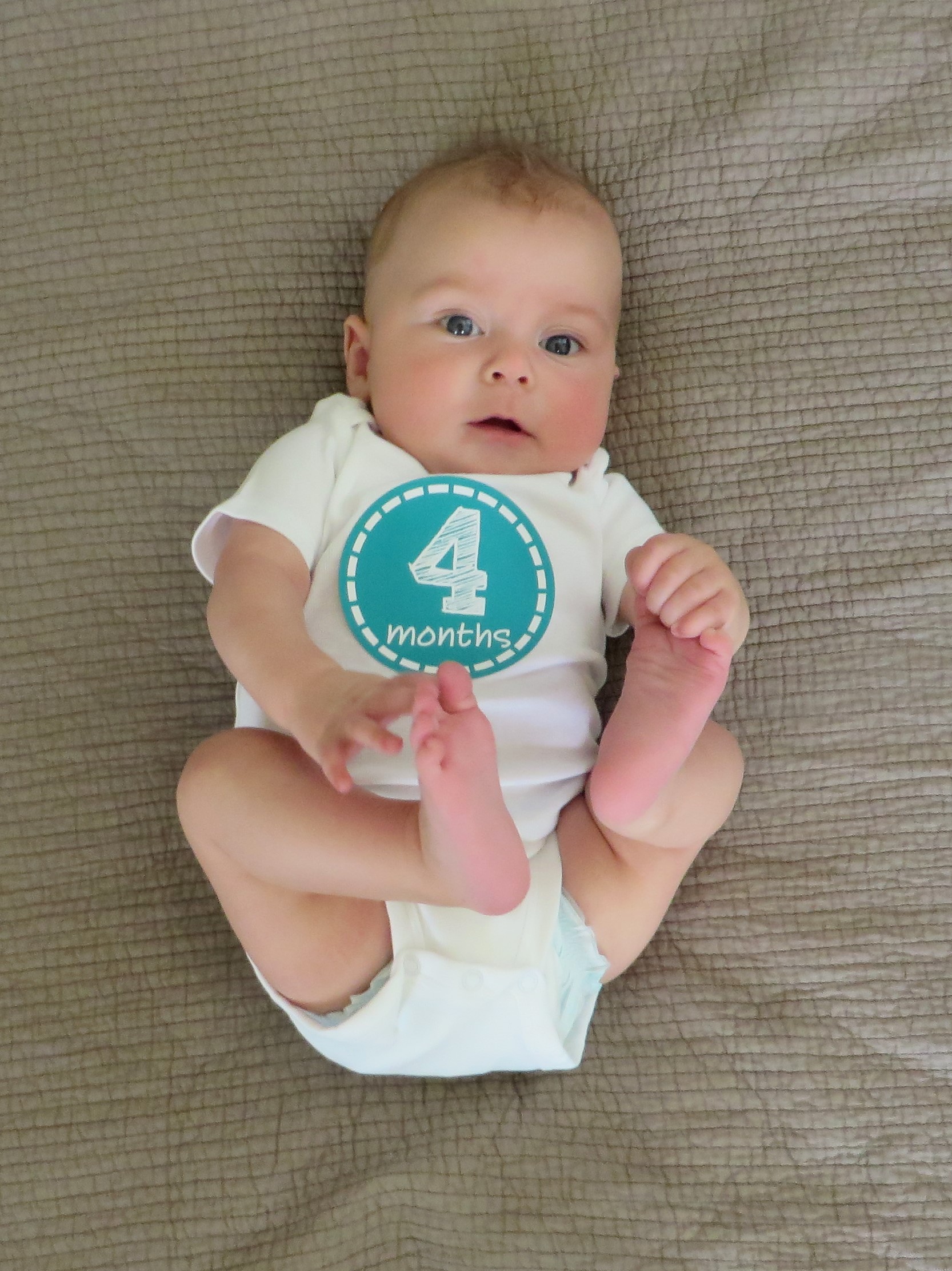 Shortly after Berend turned 3 months old, I started putting him down for naps in his crib instead of in the bassinet. Naps ranged from 20 minutes long to 3 (broken) hours long. Most days he took 4 naps, although if he took long naps, he’d only get 3, and if he only catnapped he would get 5 naps. His wake time between naps was usually about 1.5 hours. Some days he nursed to sleep for naps, and others he refused to nurse and I had to bounce him around to get hims to sleep. He started off the month napping swaddled, but by the time he turned 4 months he was napping in his Zippadee Zip sleeping bag.
