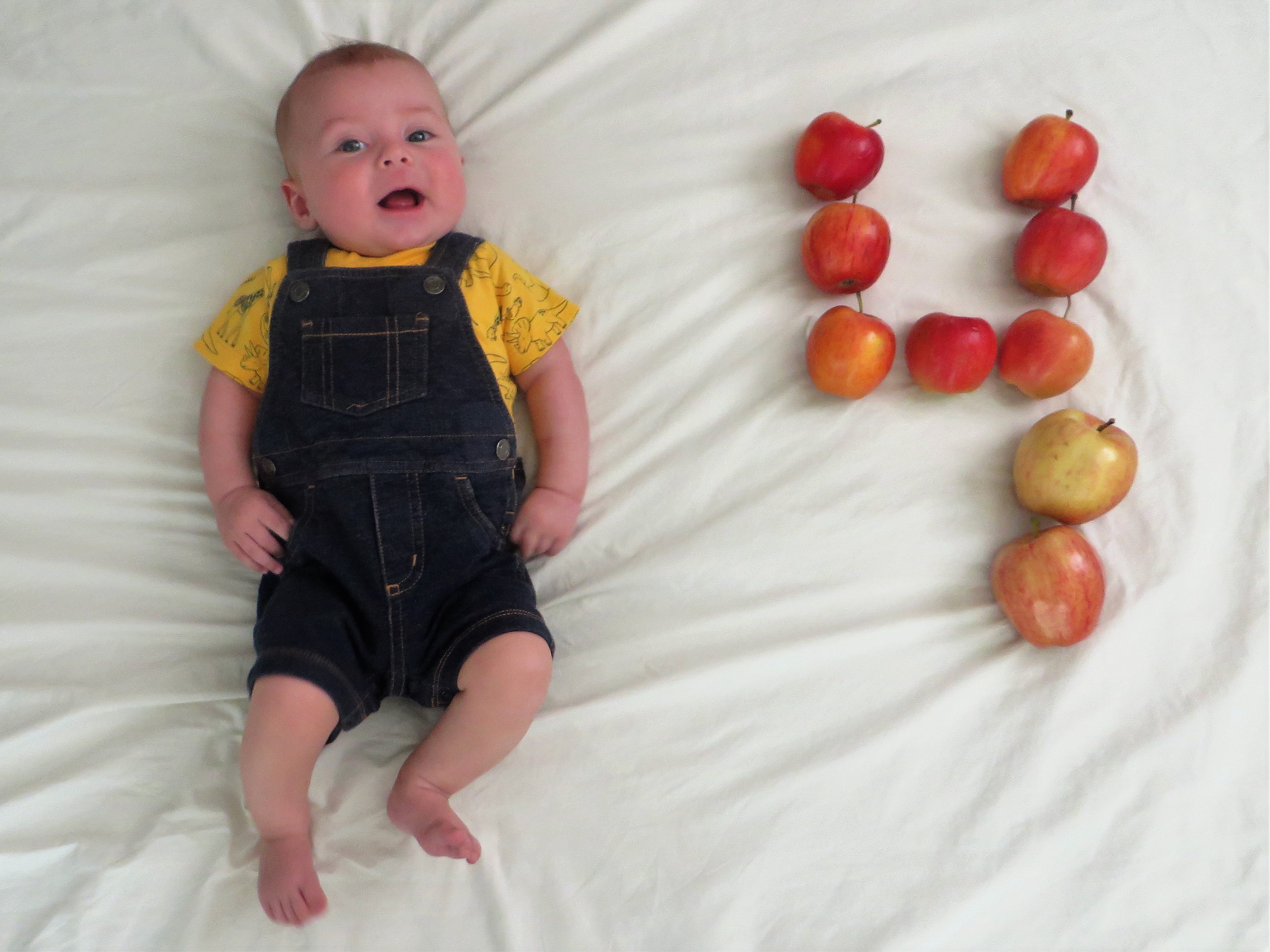 Berend’s total amount of sleep went down again this month… to an average of 13 total hours in a day. Lots of broken naps and nighttime wake-ups. I also started bedsharing out of desperation this month (same thing happened with Gerrit at this age).