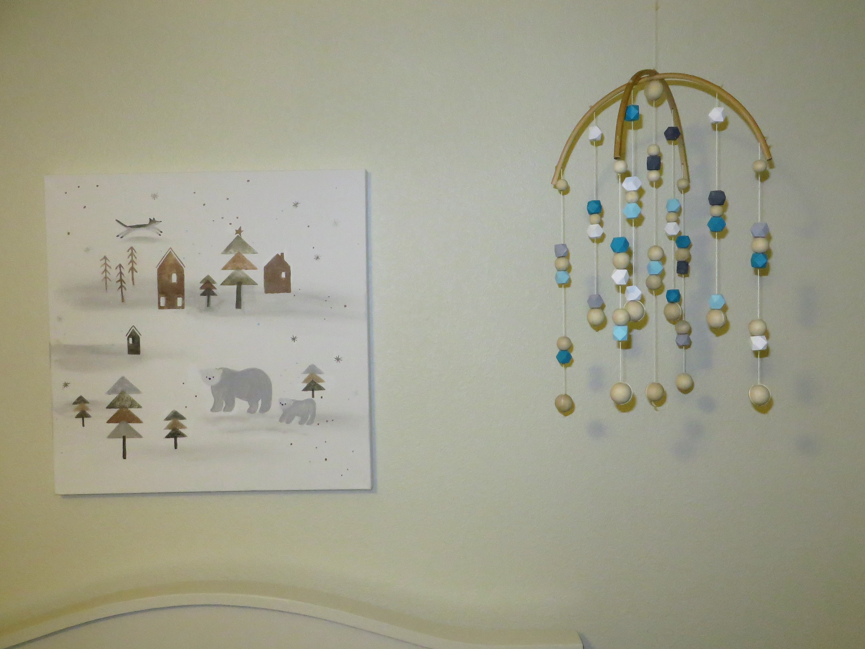 This little polar bear mama and babies might be my favorite decoration in his room! I wanted to bring some bears into the decor once Berend was born, since his name means “brave as a bear,” and I was excited to find this set on Etsy. I was so happy with them when they arrived! It’s another thing I spent a bit more than I usually would, but it’s also something I plan to use in the future, and it’s meant to be played with as well.