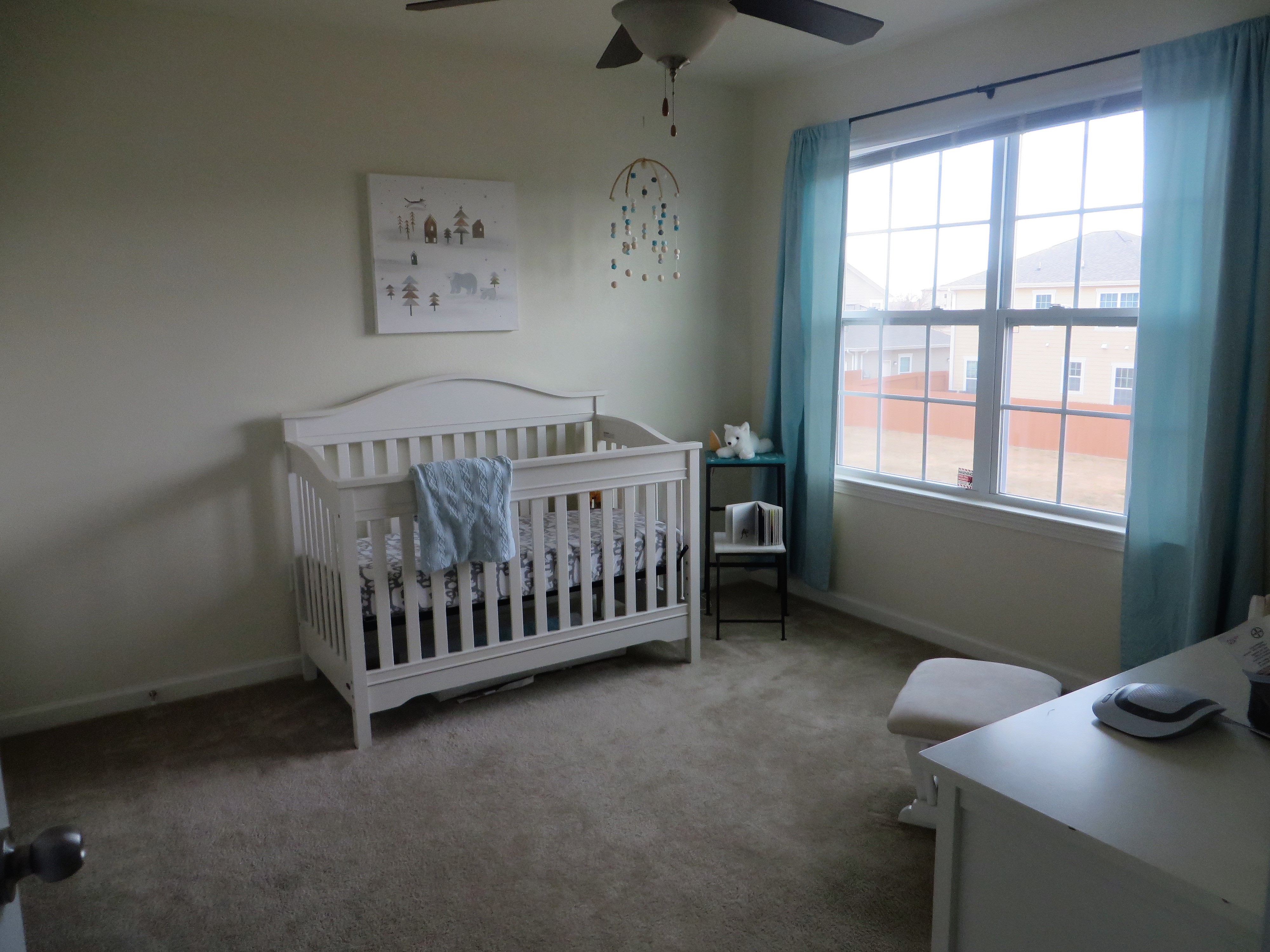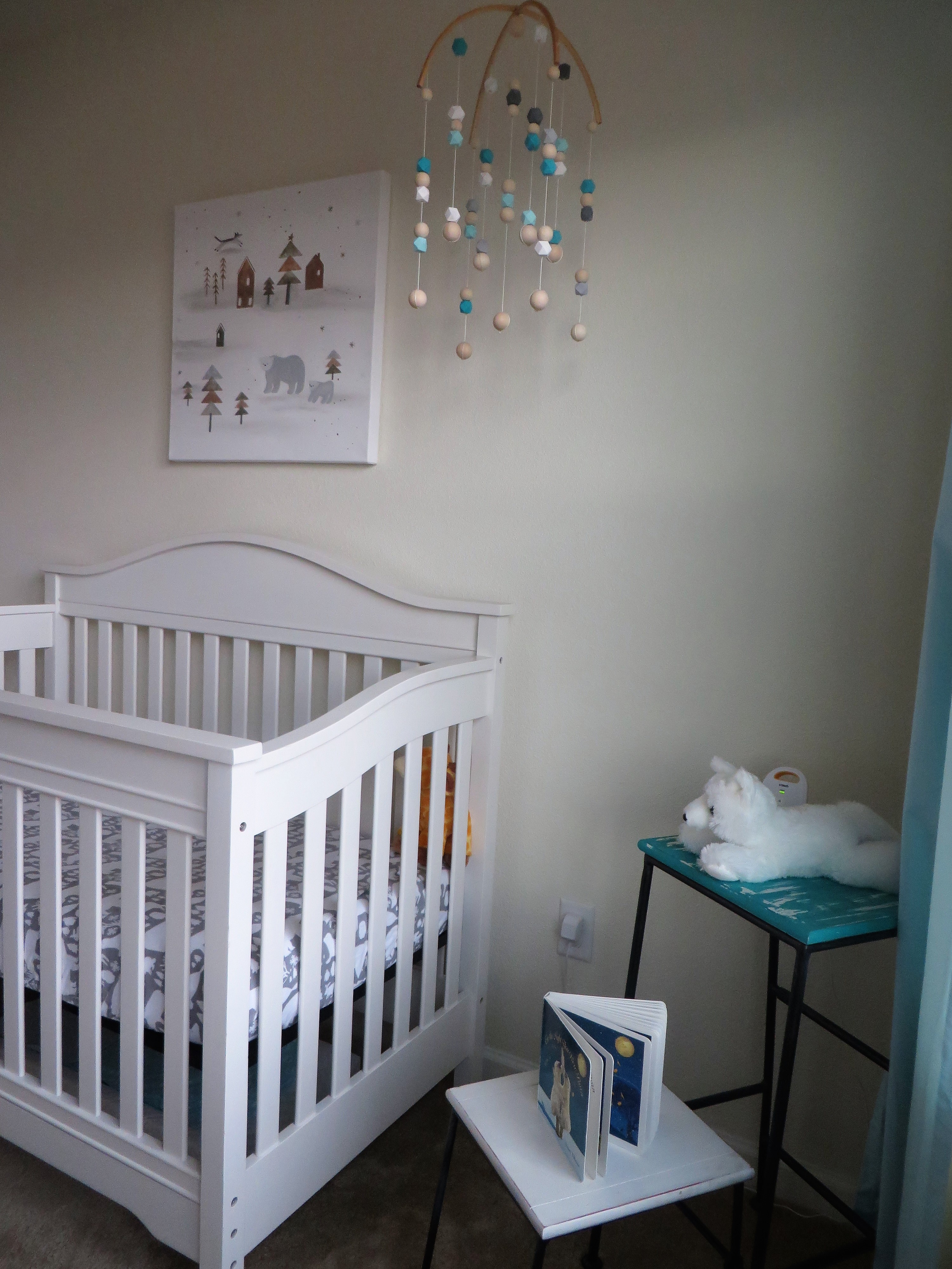 I started planning Berend’s nursery before I was even pregnant with him. I knew I wanted to reuse as much as possible from Gerrit’s beach nursery, so it really narrowed down room themes for me. I needed something gender neutral with a set color scheme (light blue, turquoise, white, neutrals), so I settled on a winter look. Once I started looking on Pinterest, I quickly decided I wanted a Scandinavian/Nordic winter theme.