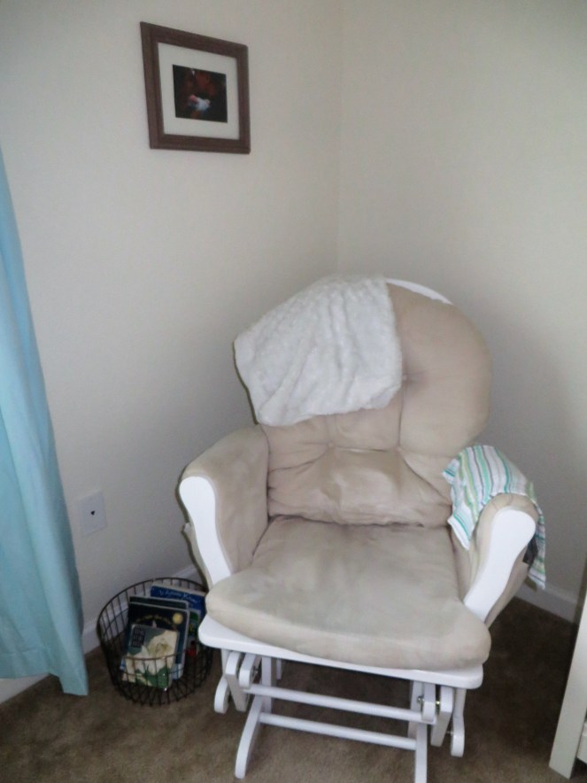We have the same glider from Gerrit’s nursery, I framed one of Berend’s newborn photos, and I picked up this simple metal basket from Walmart for his bedtime stories.