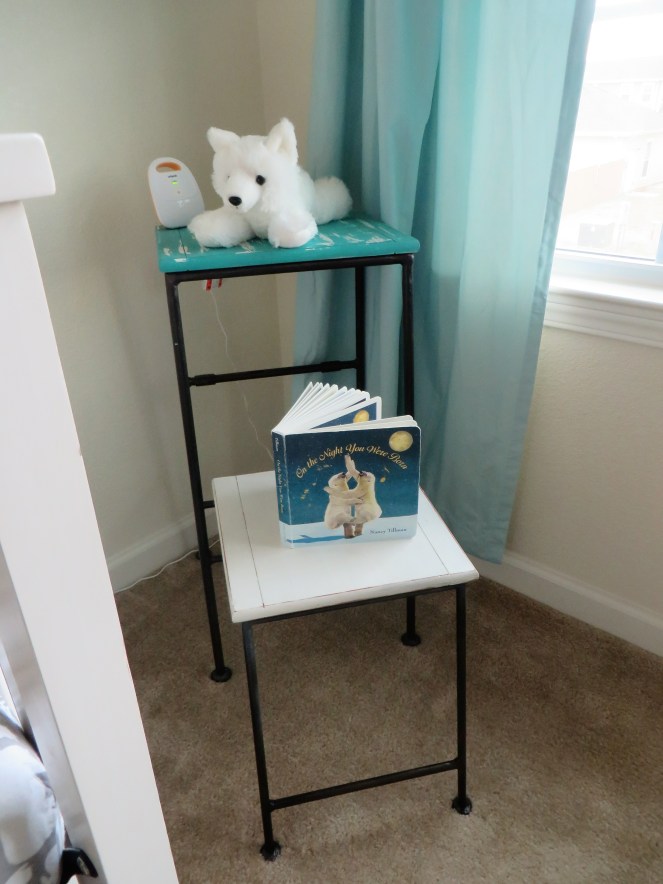 A close up of this corner of Berend’s room: the little two tier table is something I bought from a rummage sale page when we lived in North Carolina for Gerrit’s room. I’m happy it looks great in Berend’s nursery as well.