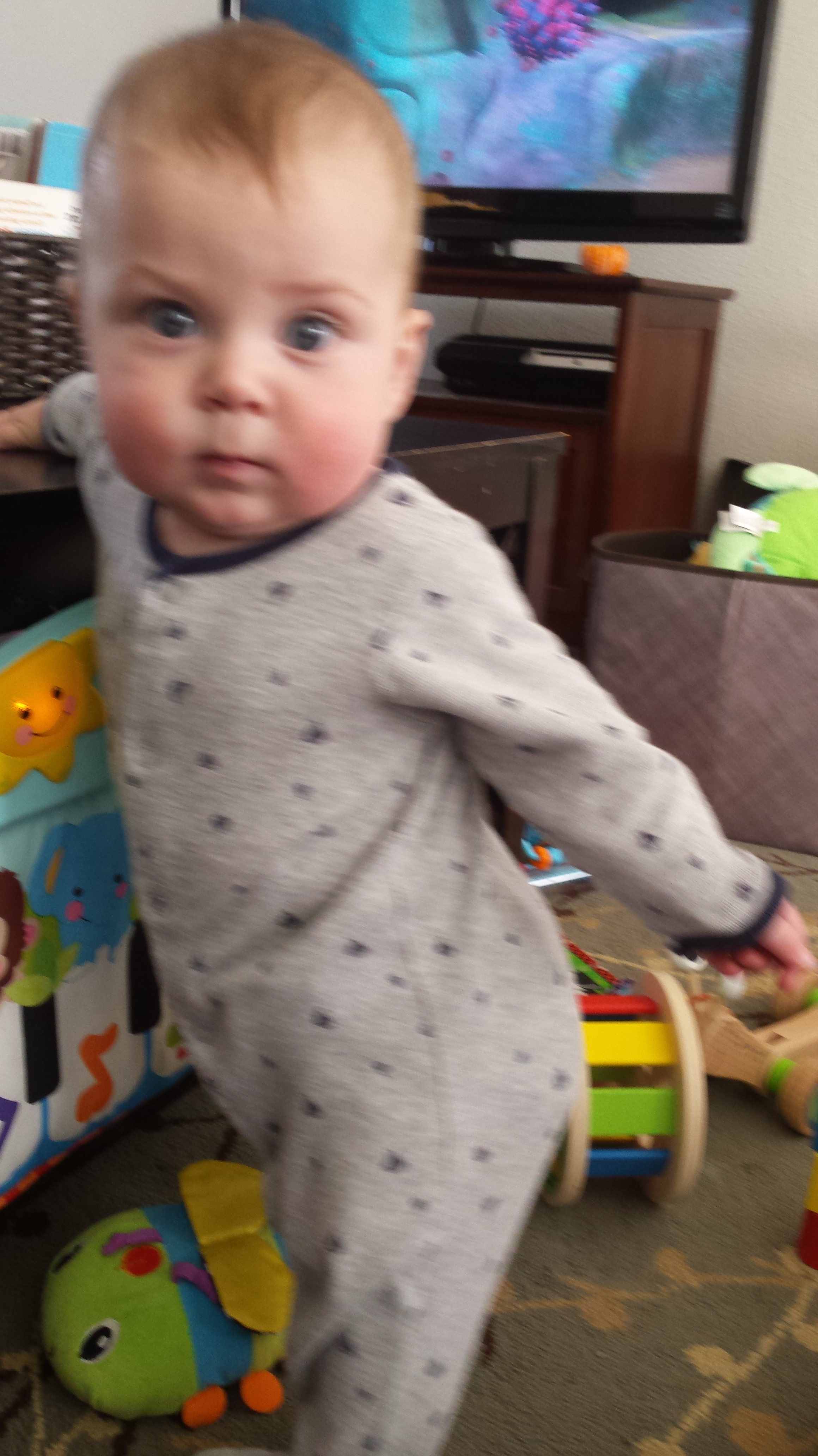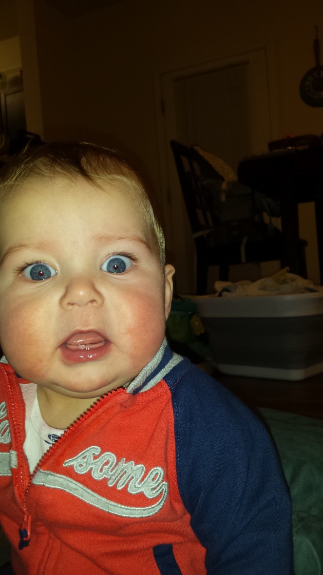Dislikes: being held while sitting, Mama walking away, going to sleep, reading ( 😦 ), car rides, getting stuck on his belly