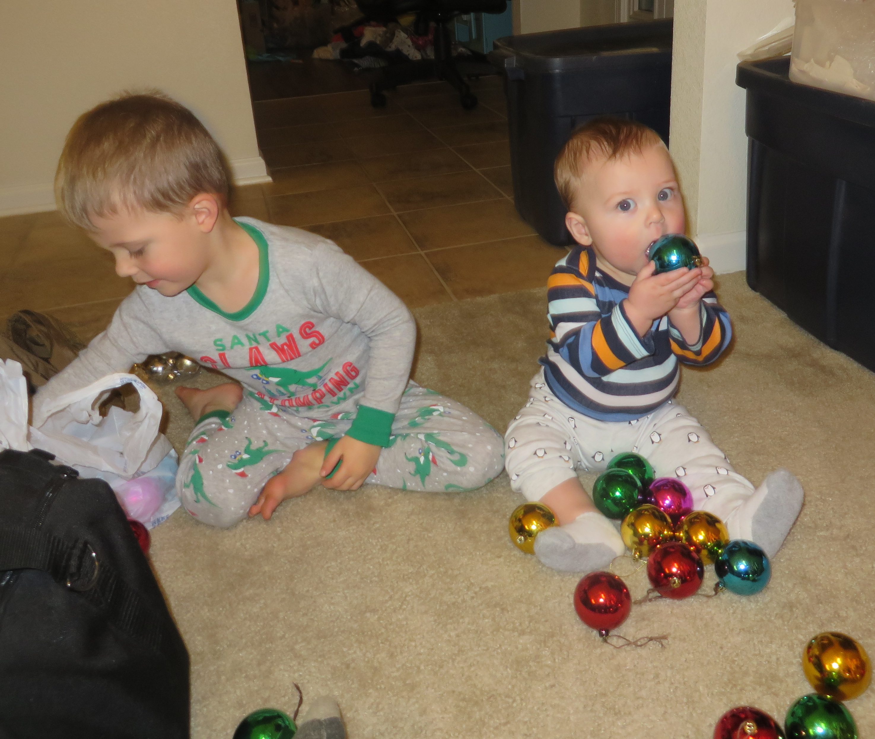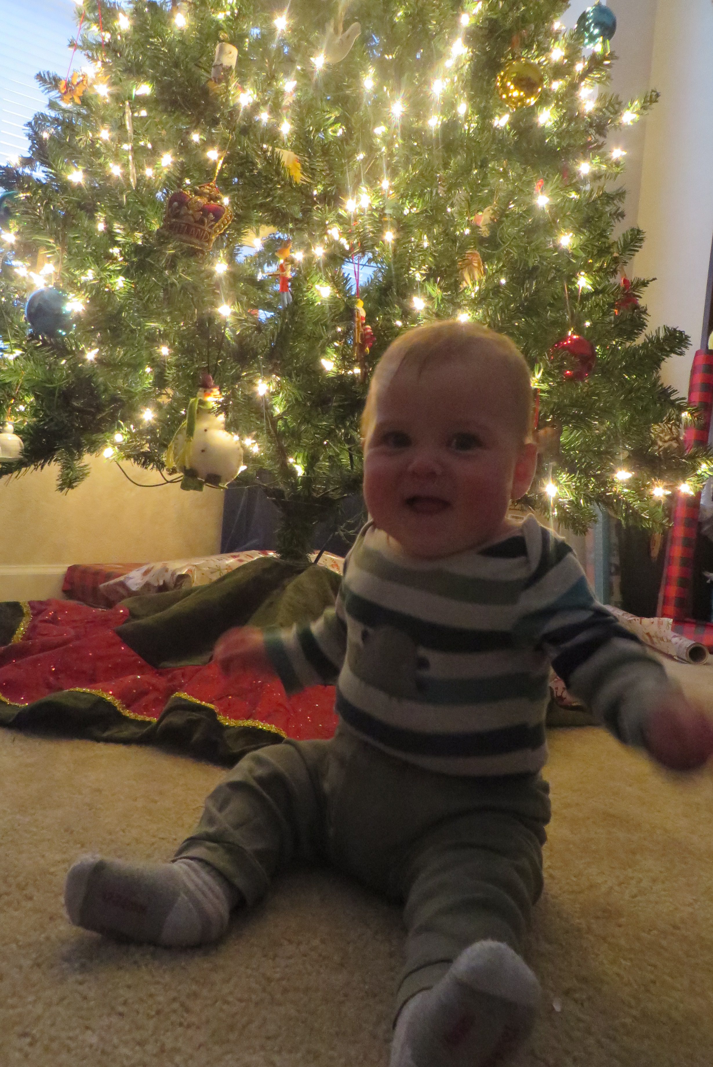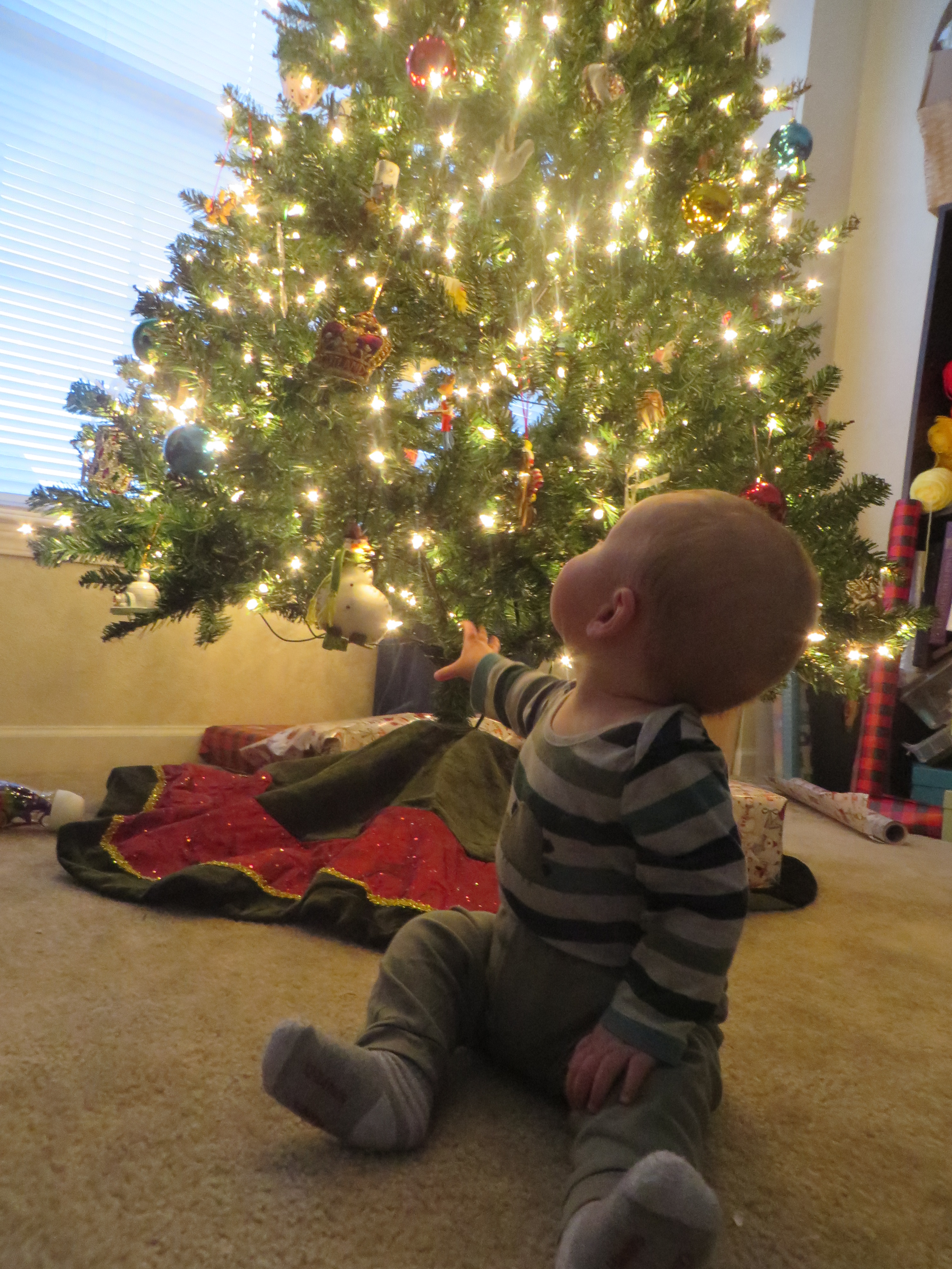 The rest of Berend’s 7th month was spent getting ready for Christmas! He got to see us decorate around the house and set up our Christmas tree. After 2 Christmases with just a 4-foot tree, we were excited to get out all the ornaments for a full 7-foot tree.