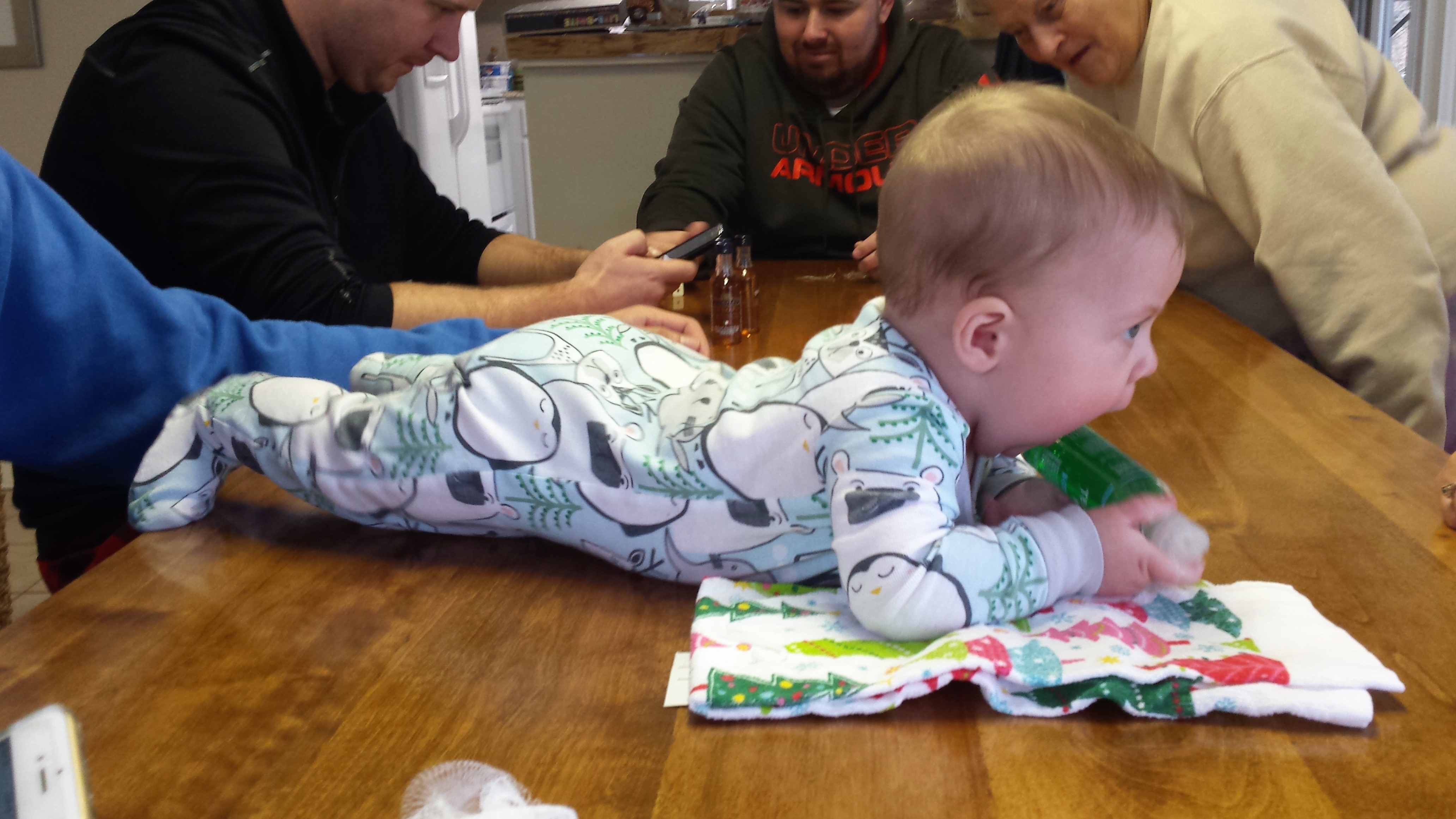 The day after Christmas, we packed up for a road trip to Missouri. It was Berend’s first big trip since we moved to New Mexico when he was only 2 months old. He did slightly better than he did in July. We were all thrilled to be out of the car though! And then Berend got to meet a LOT of people for the first time: all of his aunts and uncles (other than his Aunt Becki), his four cousins, and one of his great grandmas.