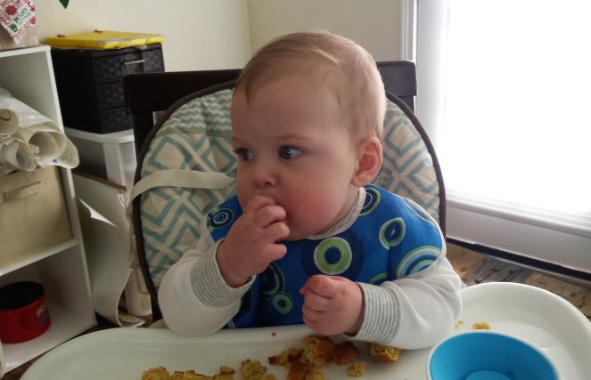 Berend continues to do well with solids too. He makes me nervous putting too much in his mouth sometimes, but he’s getting pretty good about maneuvering food around so he doesn’t gag too often. I think he still enjoys meat the most, but there’s not much he won’t eat. Sometimes it’s just hard to tell how much is actually getting consumed.