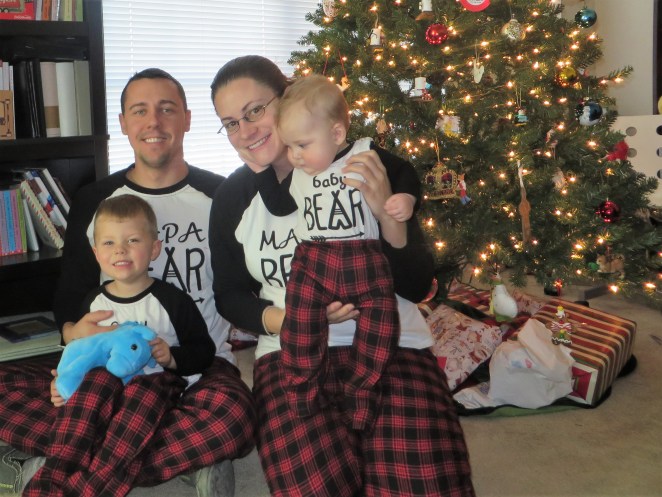 Andrew’s mom got us these, so we wore them on Christmas Eve! They were really cute, and it’s too bad the boys will outgrow them so quickly.