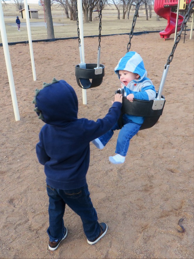 Once we were back in New Mexico, we had a nice day and Berend enjoyed his first time swinging! He loved it, especially when Gerrit pushed him.